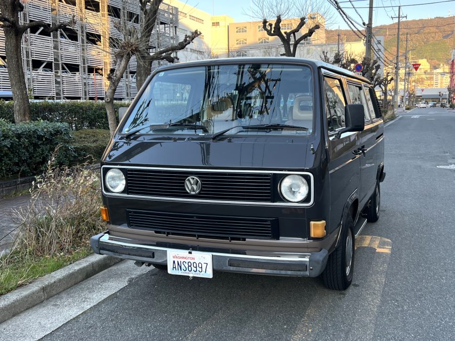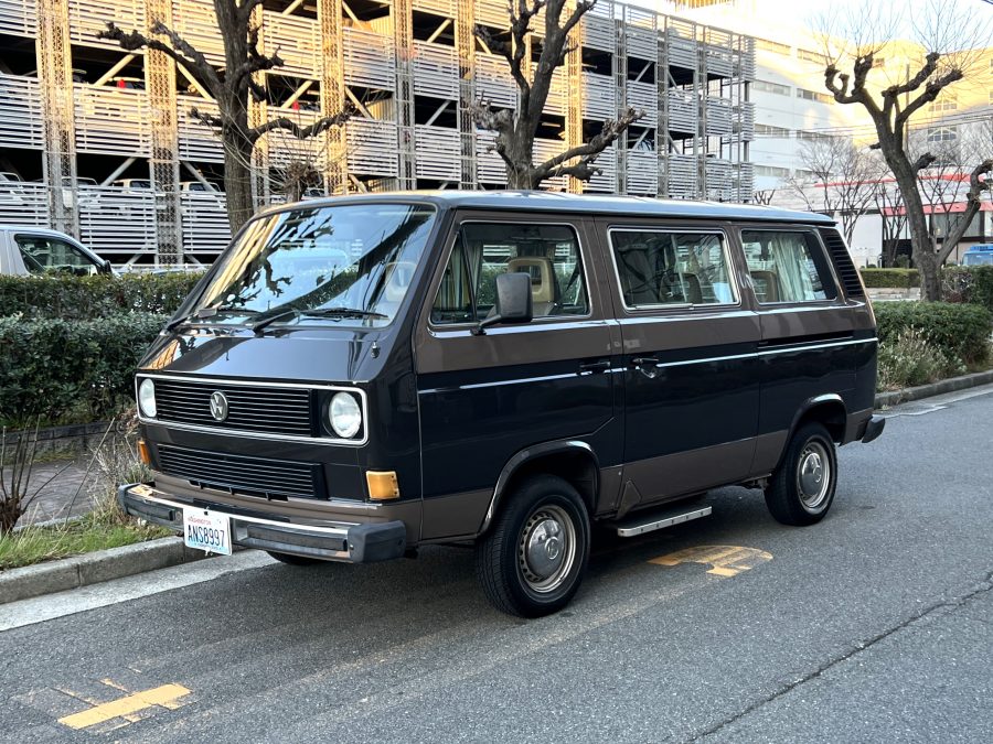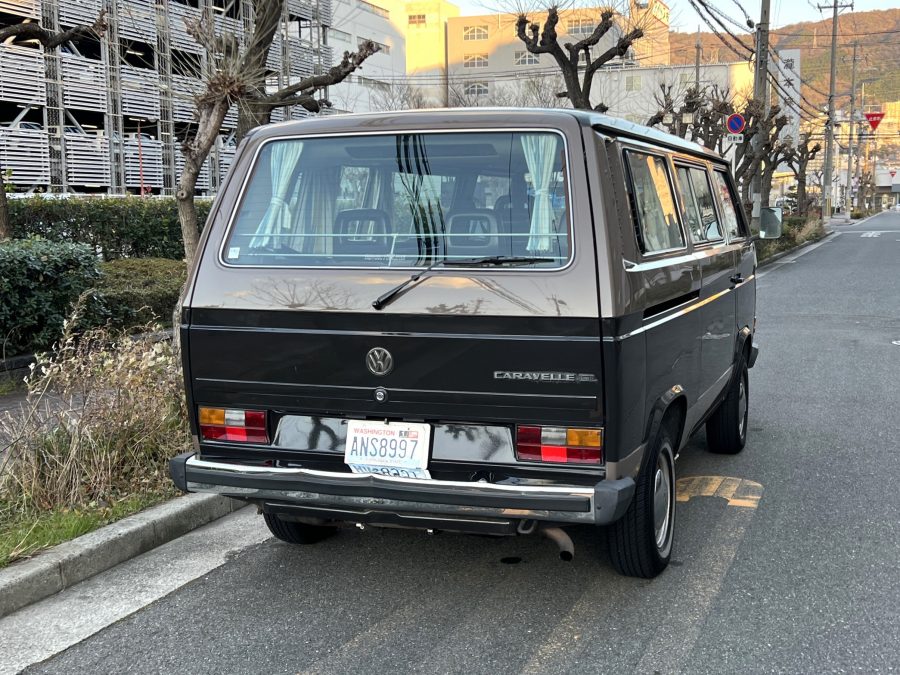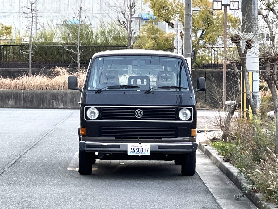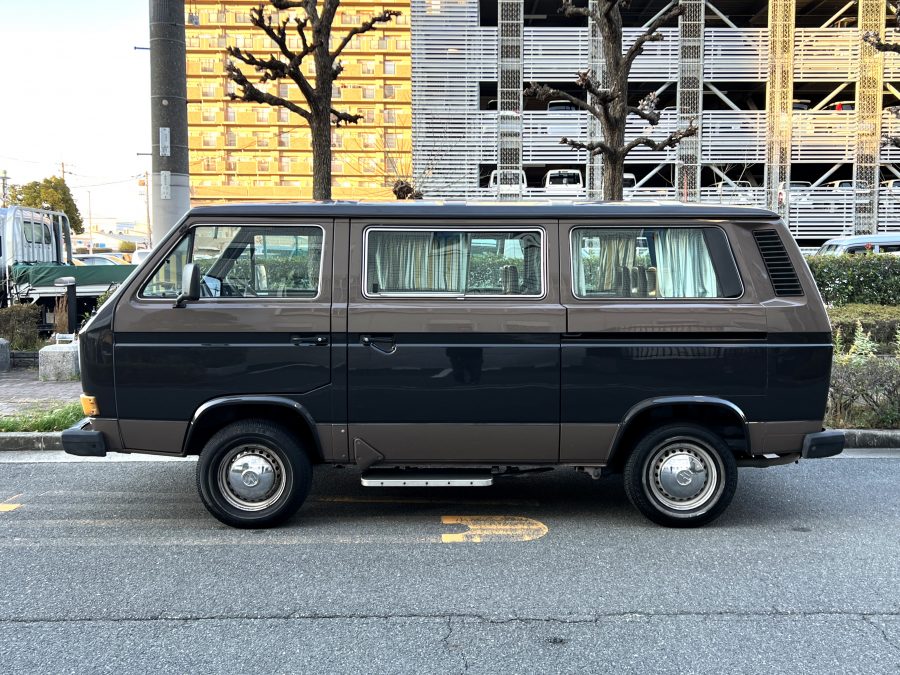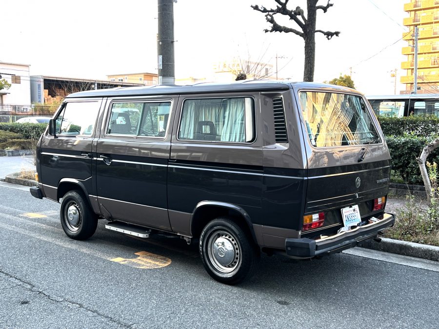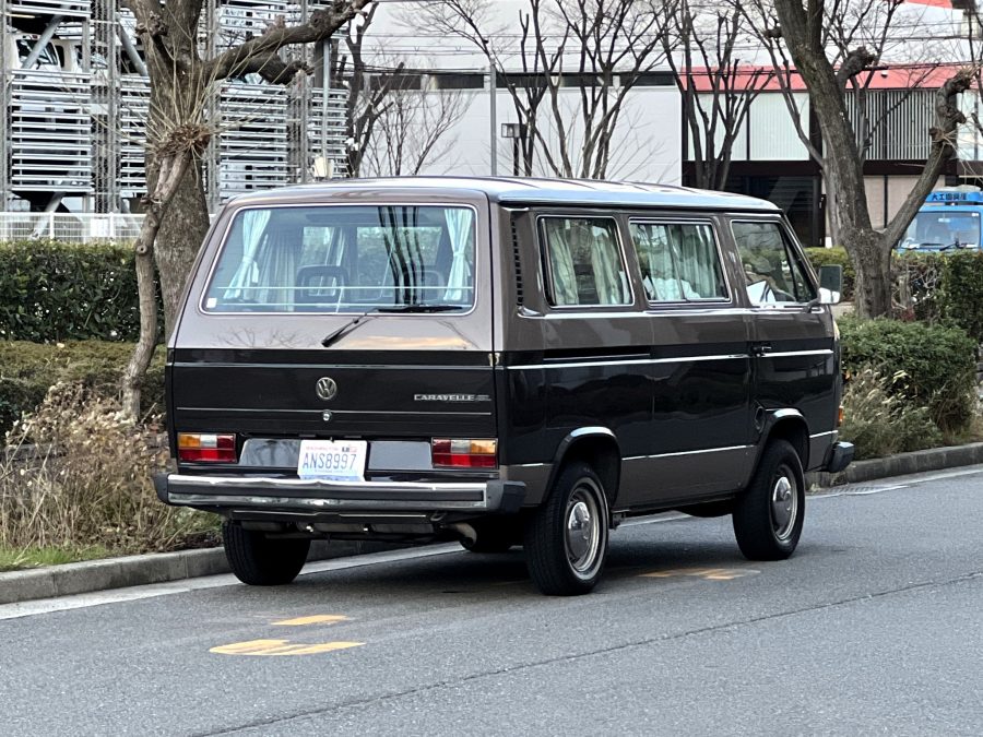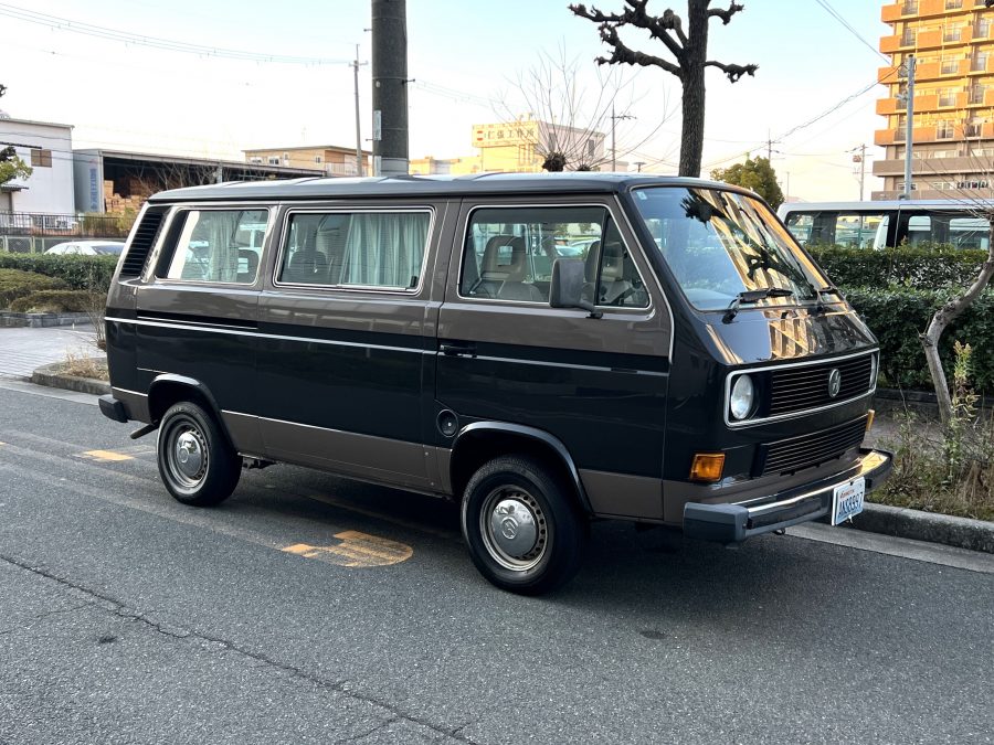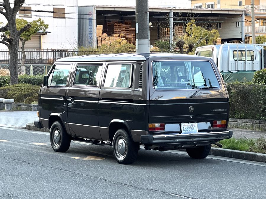 笑顔と家族愛に包まれた、ブラウンツートンT3カラベルの登場です♬ 今まで、これほどまでに家族の笑顔に包まれたT3があったでしょうか。お預かりの日は、家族団らんで記念撮影。お子さんたちは涙を浮かべながらのお見送り。その姿に、こちらまで胸が熱くなりました♫ 普段は5人家族で3列使ってフル乗車。決して広いとは言えない空間が、なぜかいつも以上に家族を近づけ、ただの移動手段ではなく、自然と団らんが生まれる場所になっていたそうです。軽井沢、八ヶ岳、箱根へのドライブ。アウトドアといえばグランピングが中心でしたが、そのどんなシーンにも、そばにはこのブラウンカラベルがあったそうです。現オーナーさまは、自動車好きなら誰もが知る某有名自動車雑誌の重鎮。職業柄、数えきれないほどの車種を知り尽くしている方が、4年前に選んだのがこのカラベル。それは、GAKUYAにてエンジンをフルオーバーホールした個体◎ 信頼できる状態であることも、大きな決め手だったそうです。仕事でも各地のサーキットや取材へと共に走り、まさに“公私ともに相棒”だったそうです👍 そして次なるステージへ。お仕事柄、さらなる経験を積むためにEVのID.BUZZへとお乗り換え。けれど、その選択もやはり“ワーゲンバスのパッケージが好き”という一本の軸の延長線上。形は変わっても、その想いはまったくブレておりません♫ 「このバスは、本当に楽しくて好き。ぜひその楽しさを味わってほしいです。」そんな温かいメッセージを残し、このT3は次のオーナーさまへとバトンを渡されます 👍さて、そのカラベルを見ていきましょう♫ まず触れておきたいのは、このブラウンという希少性👍 ディーラー車ではブルーとブラウンが存在しますが、体感で言えば8:2ほどでブラウンの方が少ない印象です。ブルーがどこかカジュアルで軽快なイメージだとすれば、ブラウンはやはり落ち着きと品のある、クラシックな佇まい、ですかね◎ エクステリアは基本的に純正然としたスタイルを保ち、そのクラシックさをしっかり演出しています。リアバンパーの凹みや細かなキズ、ルーフの色褪せなど、年式相応の“あるある”なヤレは見られますが、それも含めてT3らしい味わい◎ 全体としては艶もあり、むしろ良い雰囲気をまとっている個体と言えるかと思われます。そしてやはり、丸目2灯のキョトンとした愛嬌あるマスク♪ この顔立ちは、このブラウンという色味との相性が抜群で、派手ではないけれど、じわっと好きになる、そんな佇まいかと思います♬