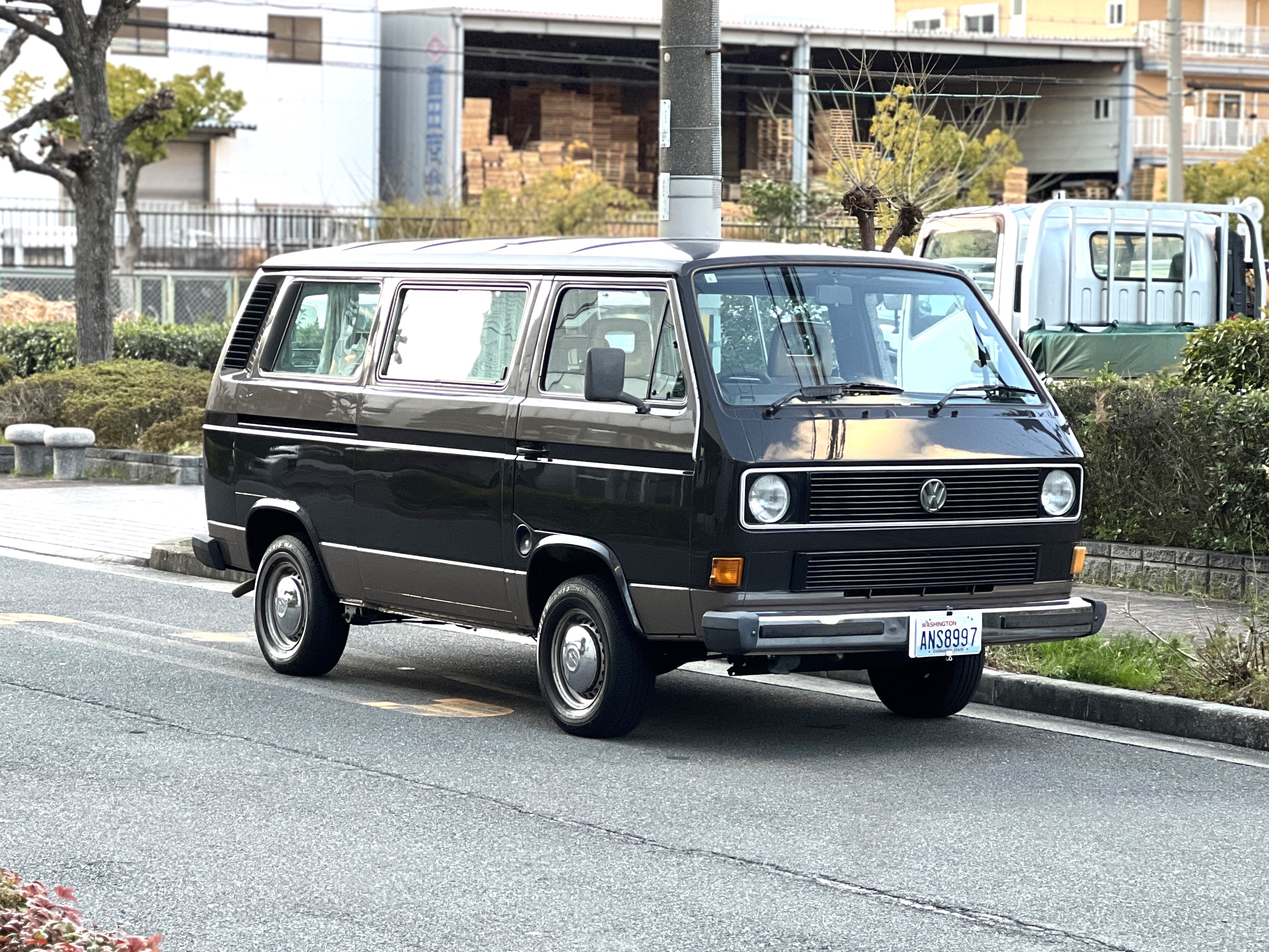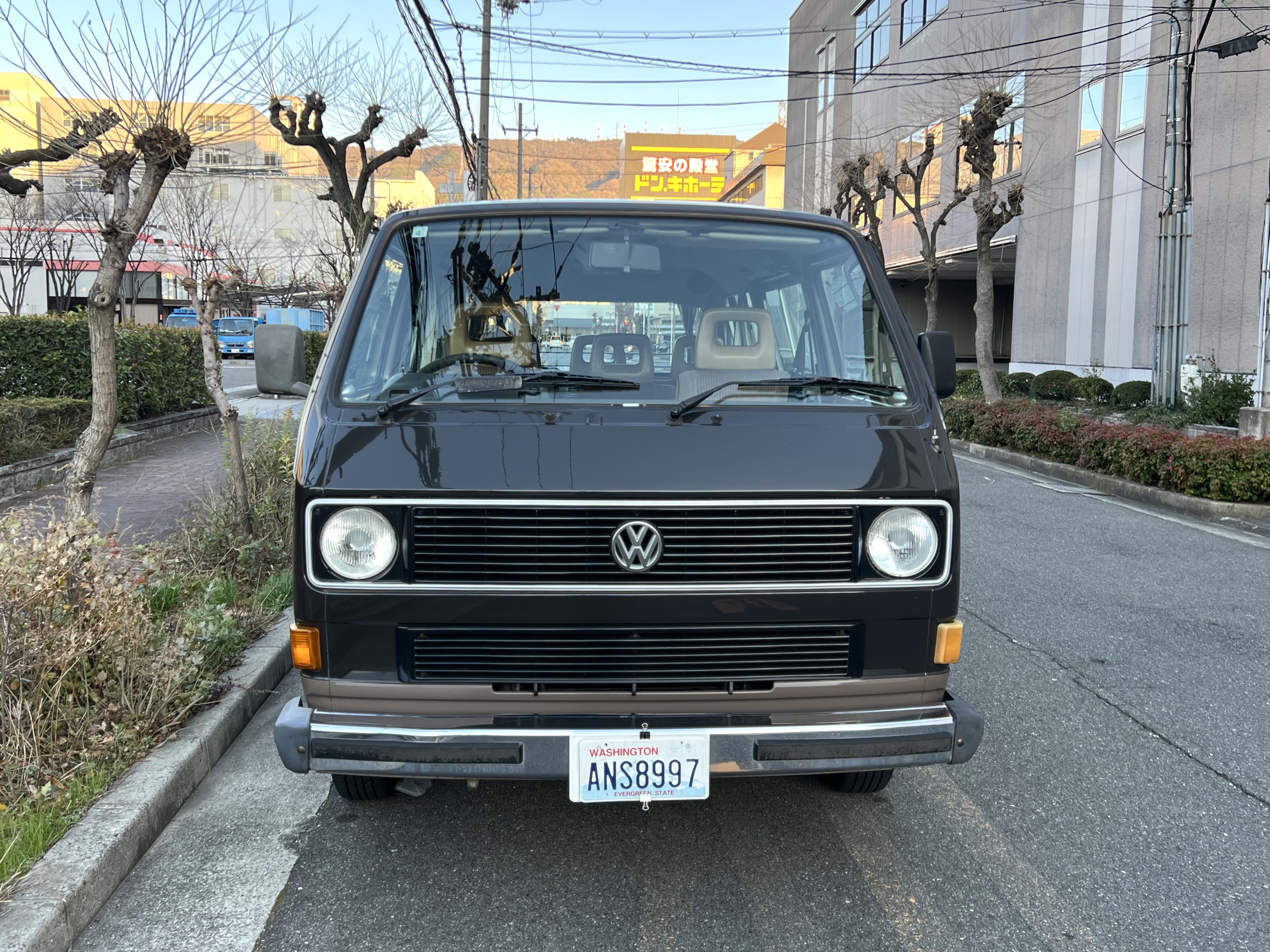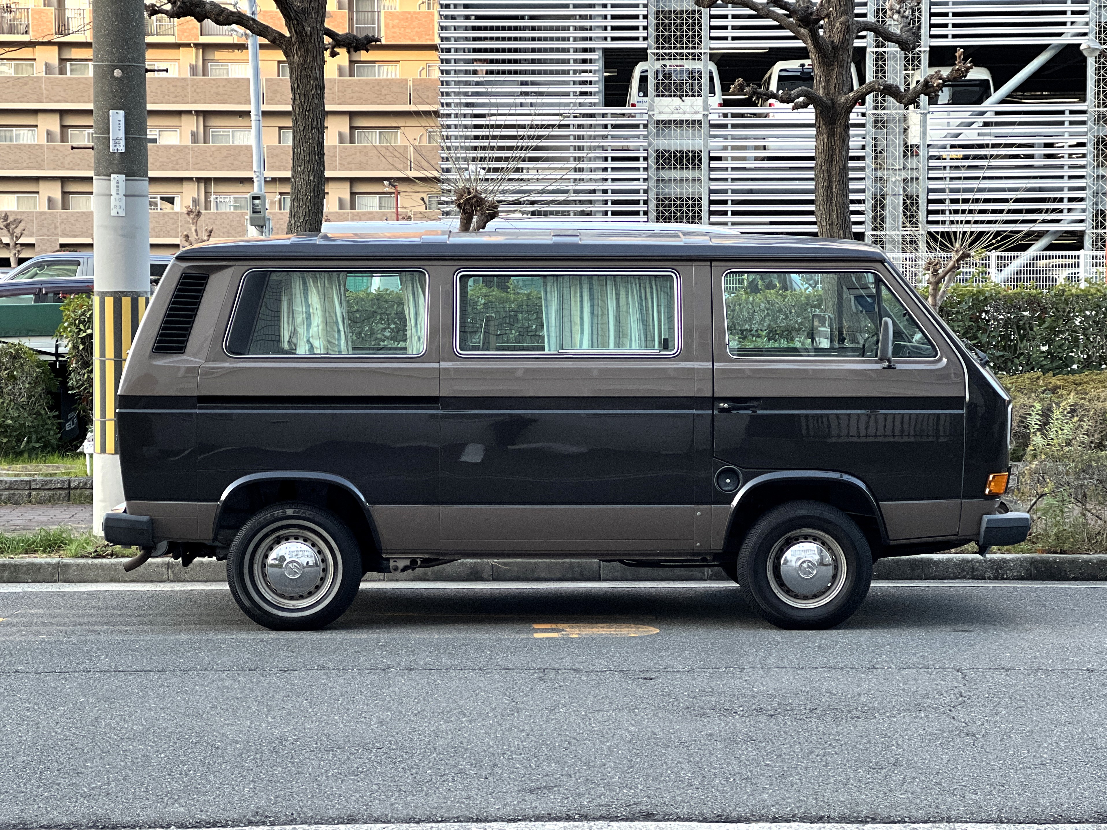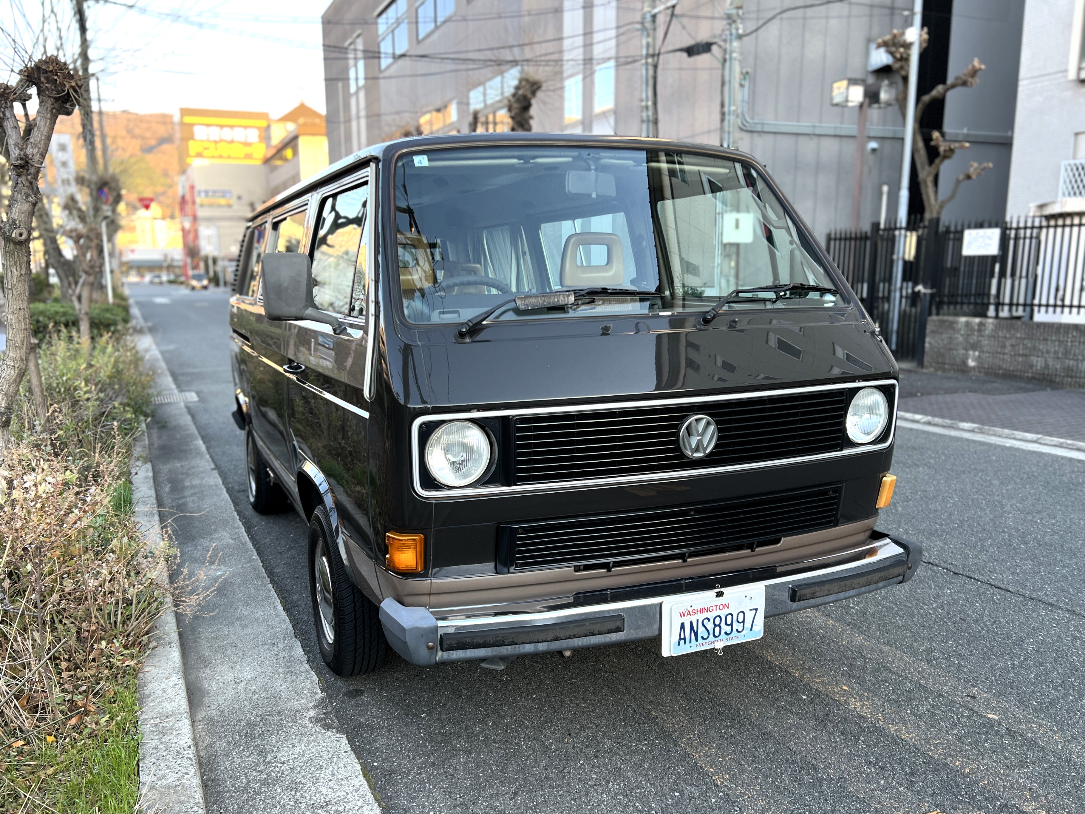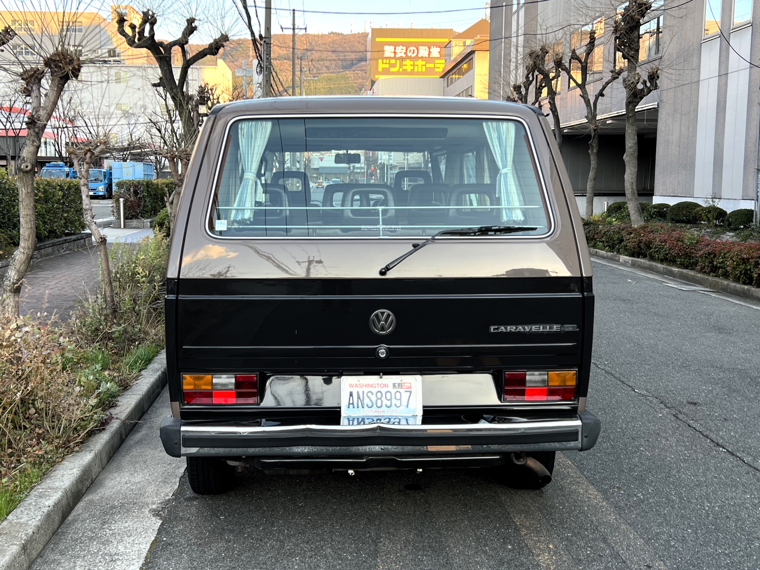 笑顔と家族愛に包まれた、ブラウンツートンT3カラベルの登場です♬ 今まで、これほどまでに家族の笑顔に包まれたT3があったでしょうか。お預かりの日は、家族団らんで記念撮影。お子さんたちは涙を浮かべながらのお見送り。その姿に、こちらまで胸が熱くなりました♫ 普段は5人家族で3列使ってフル乗車。決して広いとは言えない空間が、なぜかいつも以上に家族を近づけ、ただの移動手段ではなく、自然と団らんが生まれる場所になっていたそうです。軽井沢、八ヶ岳、箱根へのドライブ。アウトドアといえばグランピングが中心でしたが、そのどんなシーンにも、そばにはこのブラウンカラベルがあったそうです。現オーナーさまは、自動車好きなら誰もが知る某有名自動車雑誌の重鎮。職業柄、数えきれないほどの車種を知り尽くしている方が、4年前に選んだのがこのカラベル。それは、GAKUYAにてエンジンをフルオーバーホールした個体◎ 信頼できる状態であることも、大きな決め手だったそうです。仕事でも各地のサーキットや取材へと共に走り、まさに“公私ともに相棒”だったそうです👍 そして次なるステージへ。お仕事柄、さらなる経験を積むためにEVのID.BUZZへとお乗り換え。けれど、その選択もやはり“ワーゲンバスのパッケージが好き”という一本の軸の延長線上。形は変わっても、その想いはまったくブレておりません♫ 「このバスは、本当に楽しくて好き。ぜひその楽しさを味わってほしいです。」そんな温かいメッセージを残し、このT3は次のオーナーさまへとバトンを渡されます 👍さて、そのカラベルを見ていきましょう♫ まず触れておきたいのは、このブラウンという希少性👍 ディーラー車ではブルーとブラウンが存在しますが、体感で言えば8:2ほどでブラウンの方が少ない印象です。ブルーがどこかカジュアルで軽快なイメージだとすれば、ブラウンはやはり落ち着きと品のある、クラシックな佇まい、ですかね◎ エクステリアは基本的に純正然としたスタイルを保ち、そのクラシックさをしっかり演出しています。リアバンパーの凹みや細かなキズ、ルーフの色褪せなど、年式相応の“あるある”なヤレは見られますが、それも含めてT3らしい味わい◎ 全体としては艶もあり、むしろ良い雰囲気をまとっている個体と言えるかと思われます。そしてやはり、丸目2灯のキョトンとした愛嬌あるマスク♪ この顔立ちは、このブラウンという色味との相性が抜群で、派手ではないけれど、じわっと好きになる、そんな佇まいかと思います♬