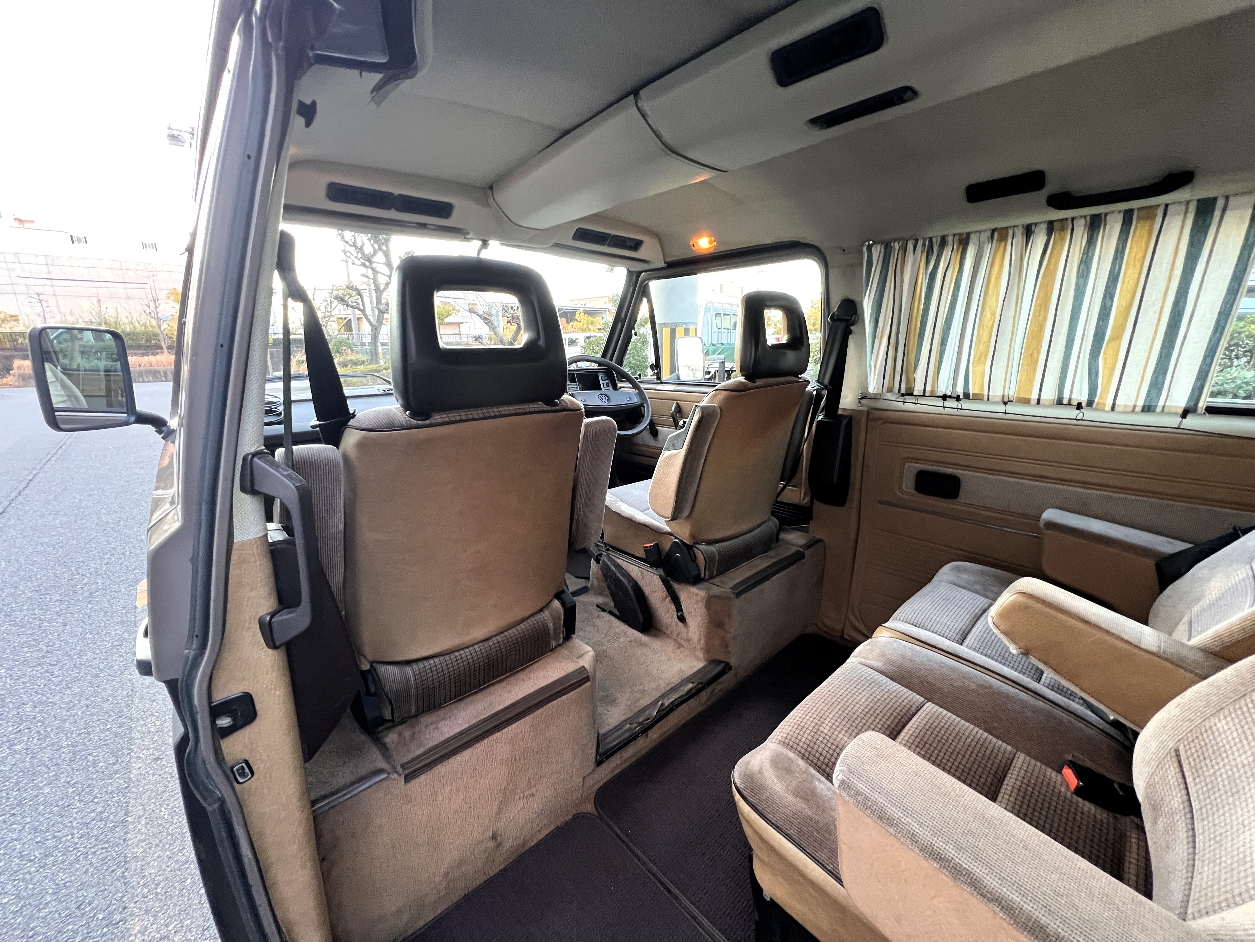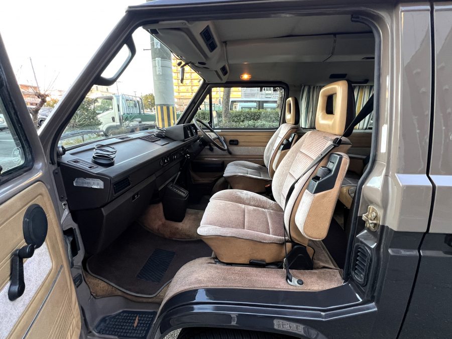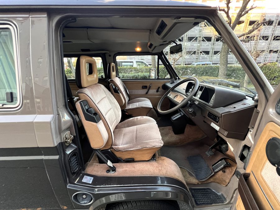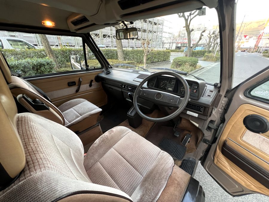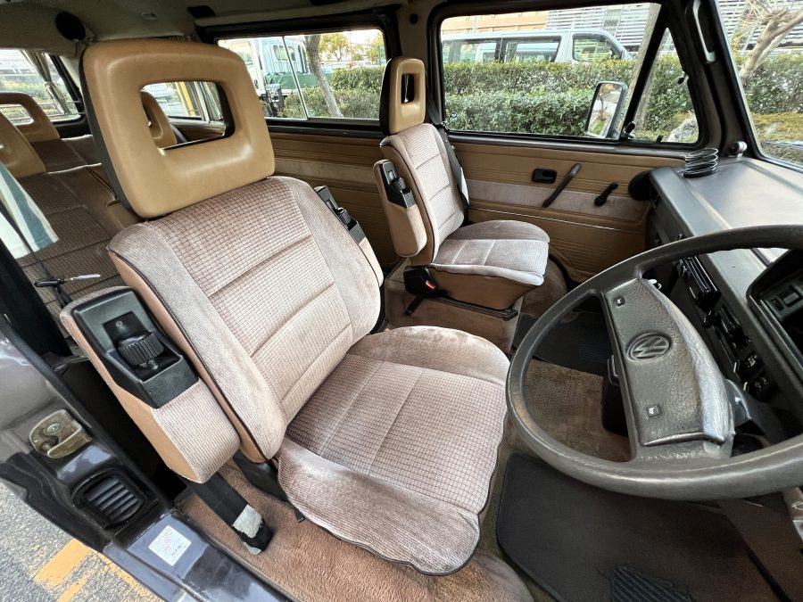 お次はインテリア。年式相応の使用感はございますが、シートに大きな破れなどはなく、まだまだ日常使いにしっかり応えてくれるコンディションです👍 ピカピカではないけれど、くたびれてもいない。長く付き合ってきたクルマならではの、自然体の味わいを感じる室内空間です👍 ひとつ挙げるとすれば、ルーフダクトの取り付けがやや緩くなっており、少し垂れ気味な点。機能面に大きな問題はありませんが、気になる方には調整をさせていただきます。全体としては、T3らしい時間の重なりを感じさせる、クラシックで落ち着いたインテリア。肩肘張らずに付き合える、ちょうど良い雰囲気です◎
