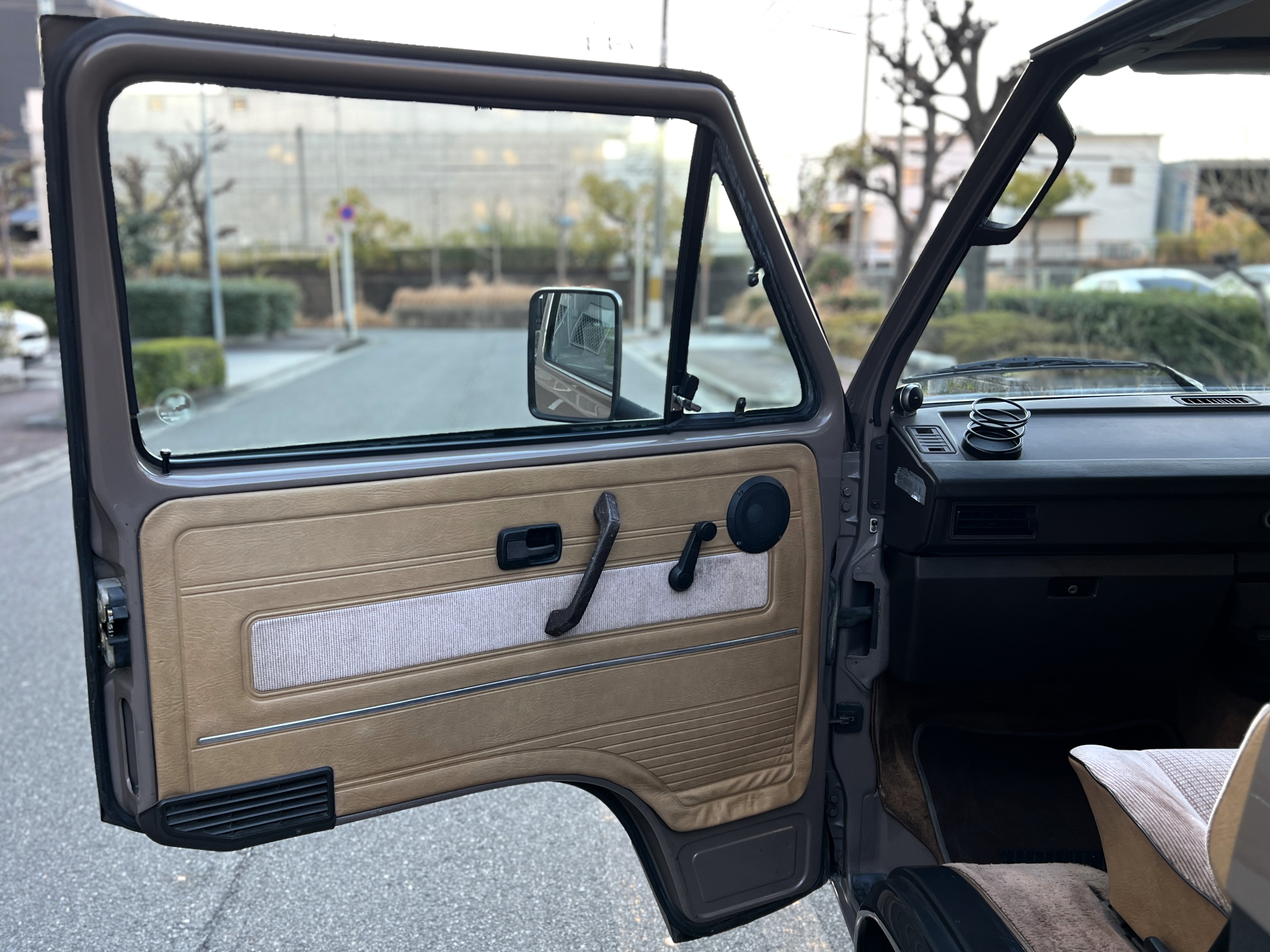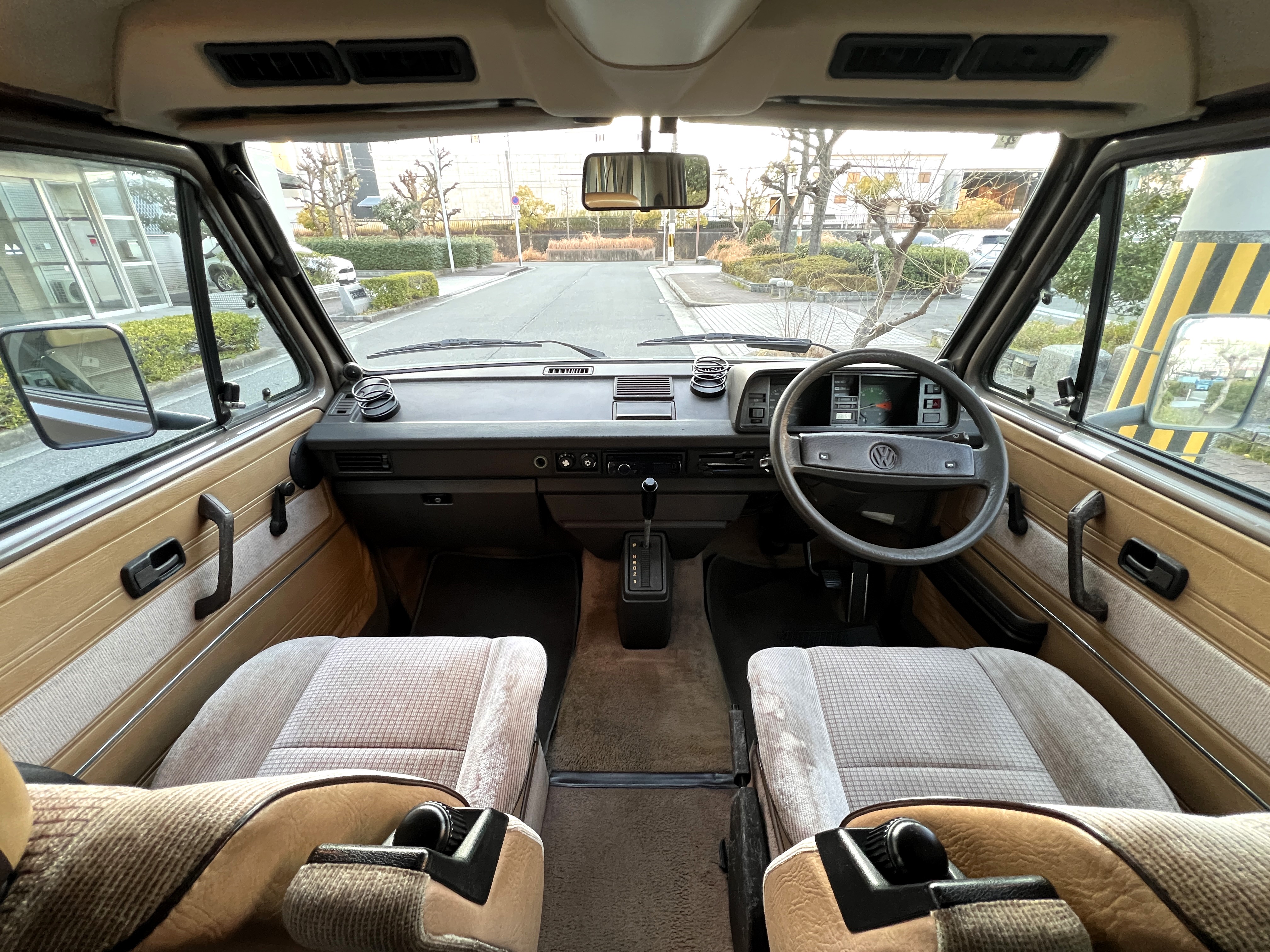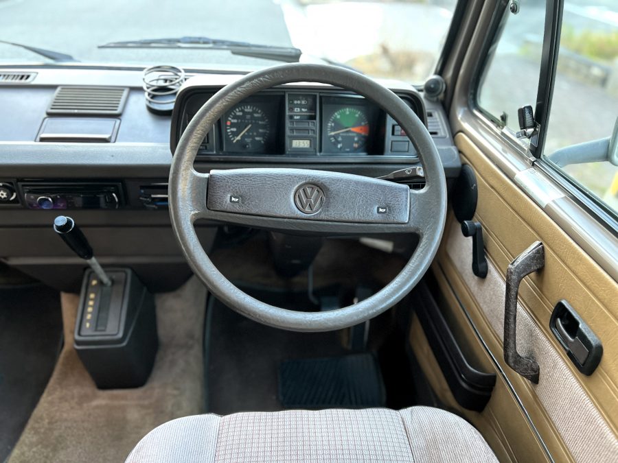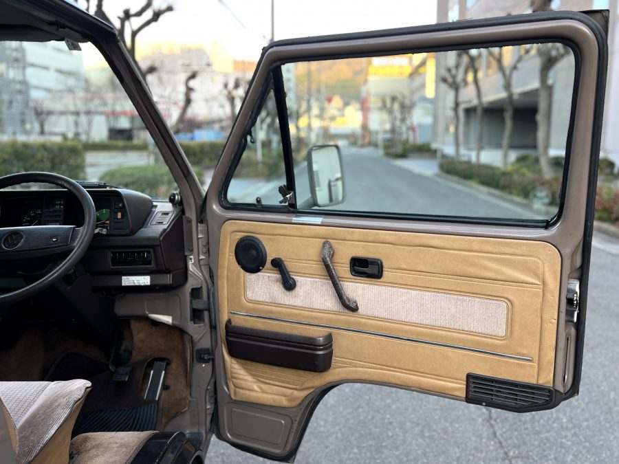 お次はインテリア。年式相応の使用感はございますが、シートに大きな破れなどはなく、まだまだ日常使いにしっかり応えてくれるコンディションです👍 ピカピカではないけれど、くたびれてもいない。長く付き合ってきたクルマならではの、自然体の味わいを感じる室内空間です👍 ひとつ挙げるとすれば、ルーフダクトの取り付けがやや緩くなっており、少し垂れ気味な点。機能面に大きな問題はありませんが、気になる方には調整をさせていただきます。全体としては、T3らしい時間の重なりを感じさせる、クラシックで落ち着いたインテリア。肩肘張らずに付き合える、ちょうど良い雰囲気です◎