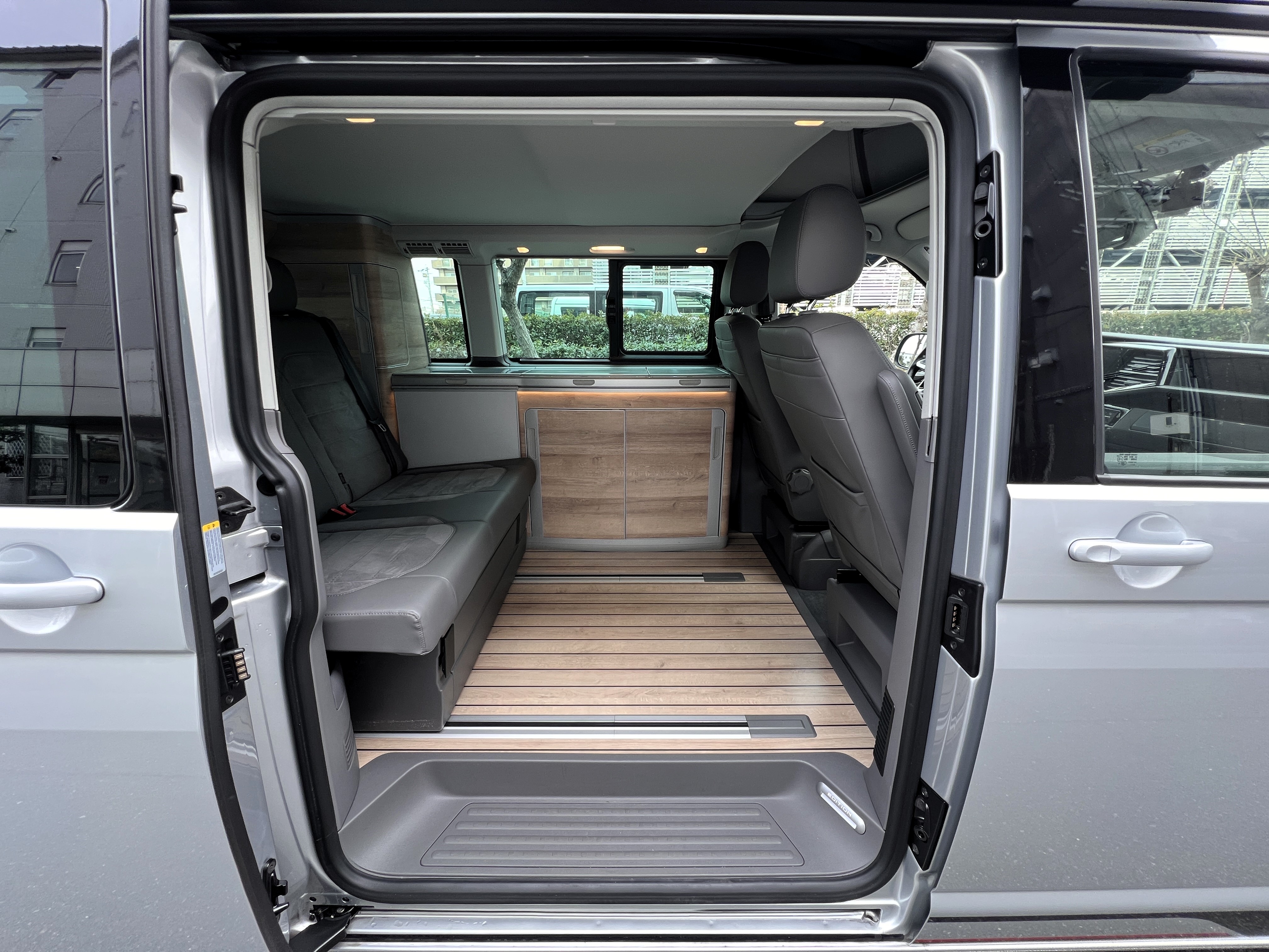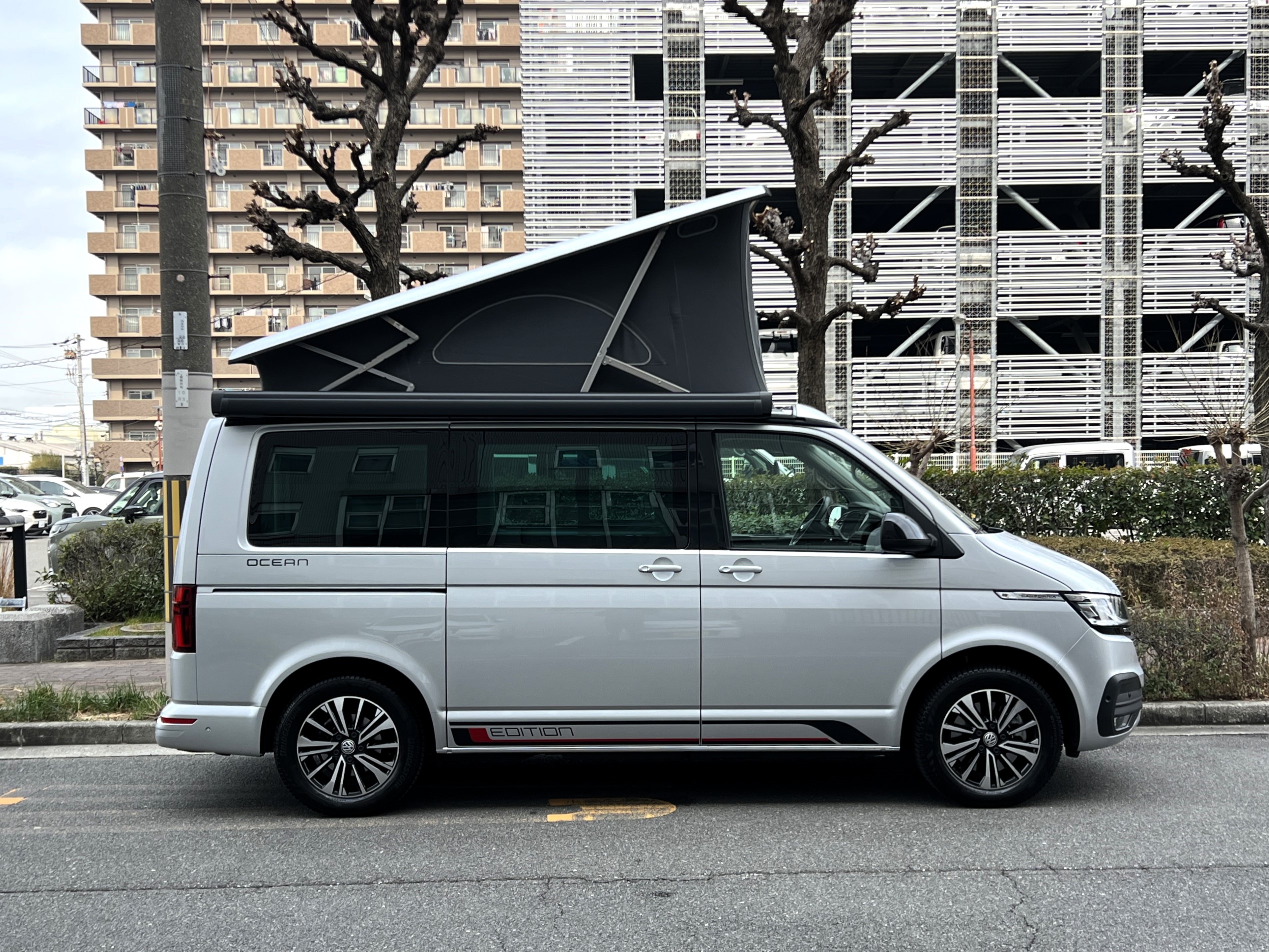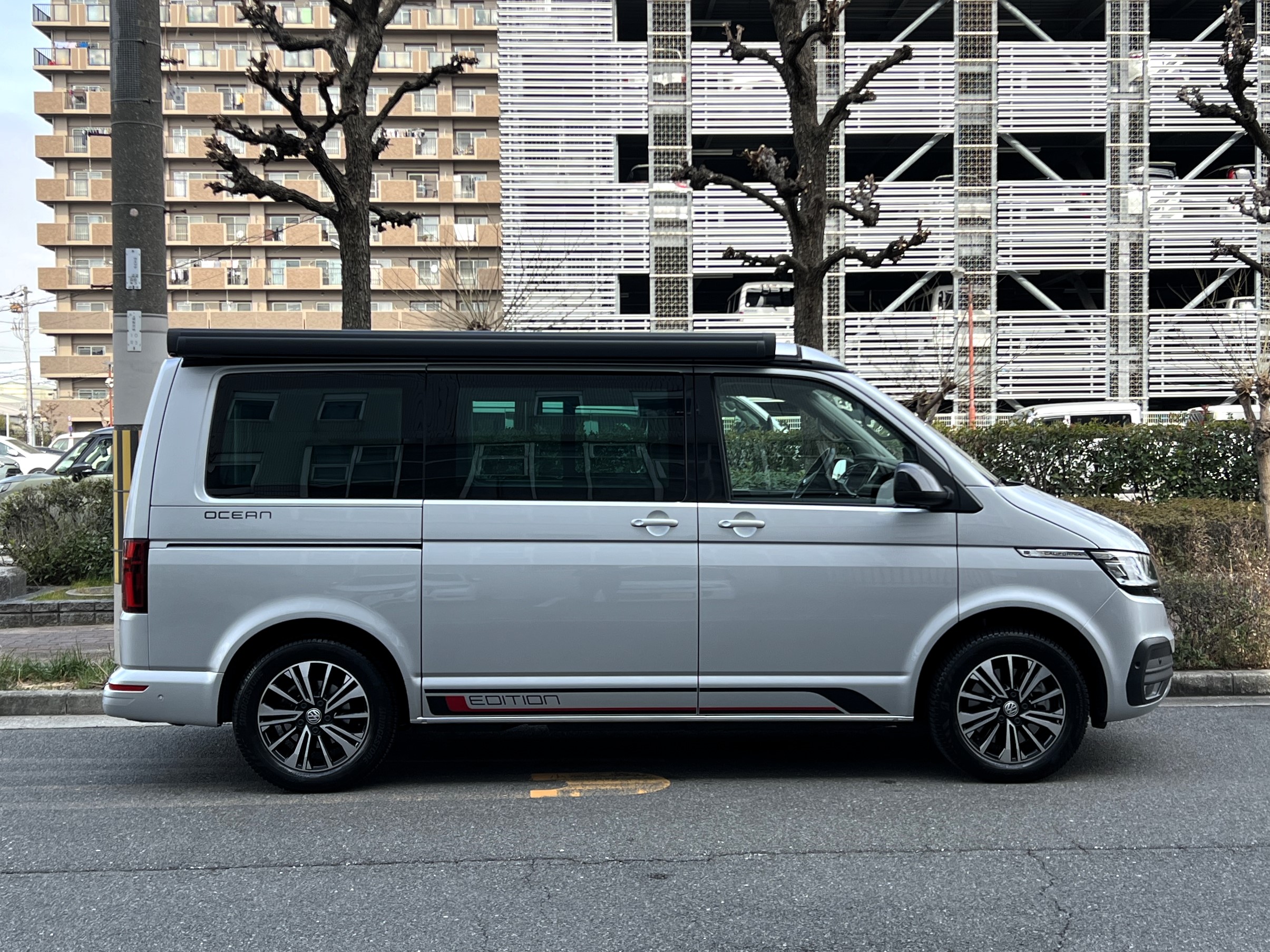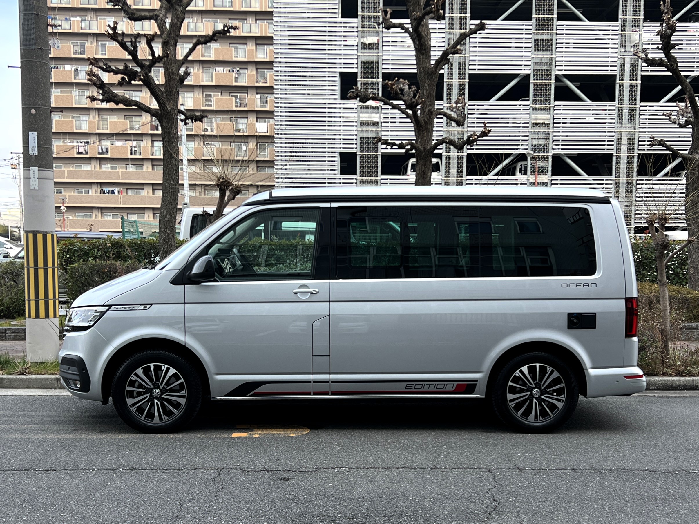 本国ドイツで実は大人気のシルバー、カリフォルニアエディションの登場です♬ 今回のマッチング車両は、本国ドイツで人気の高いシルバーカラーのカリフォルニアエディション。現オーナーさまが新車で手にされた一台です♫ ご納車後は、趣味のイベントへ参加するため全国津々浦々を走破。イベント前日の前泊にも大活躍し、カリフォルニアならではの機動力と快適性を存分に楽しまれてきました◎ その楽しさにすっかり魅了され、もっとカリフォルニアを楽しみたい!ということで、今回は別のカリフォルニアへお乗り換え。「本当に楽しくて最高のクルマです。次のオーナーさんにも大切に乗ってもらえたら嬉しいです。」そんな温かいメッセージとともに、次のオーナーさまへバトンを渡されることになりました。では、その銀メタオーシャンを見てまいりましょう♬ 「新車に一番近いカリ」そんな映画タイトルのようなフレーズが、まさにぴったりハマる一台で👍 ボディコンディションは文句なし。ルーフとミラーはグロスブラック仕様、さらにサイド&リアの専用エディションデカールが、リフレックスシルバーメタリックのボディと絶妙にマッチ◎ 結果として、想像以上にかなりオトコマエなルックスに仕上がっている仕様です👍 足元には大人気のアラカジュ(Aracaju)ホイールに、もちろん必須装備のサイドオーニング、そして電動ポップアップルーフもばっちり装備。さらにこの車両、DCC(アダプティブシャーシコントロール)も搭載。ダンパーの減衰力を好みに合わせて変更できるため、街乗りから長距離ドライブまで驚くほど快適な乗り味を実現しております。そして目的地に着けば、そのまま別荘に早変わり♫ 走って楽しい、泊まって嬉しい、暮らして快適。まさに理想のマイホームカーなんです👍 ぜひ一度、その魅力をご体験しにきてくださいませ。