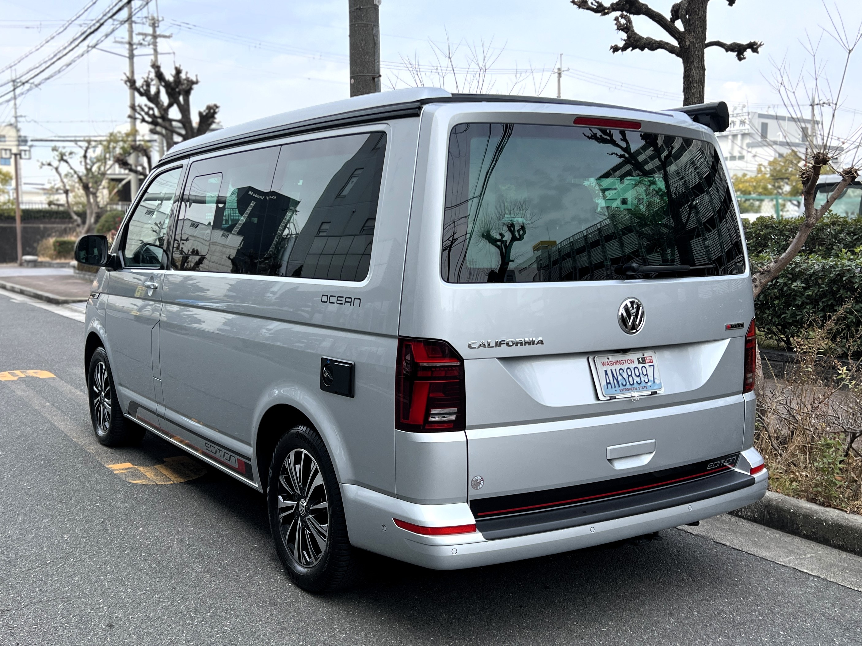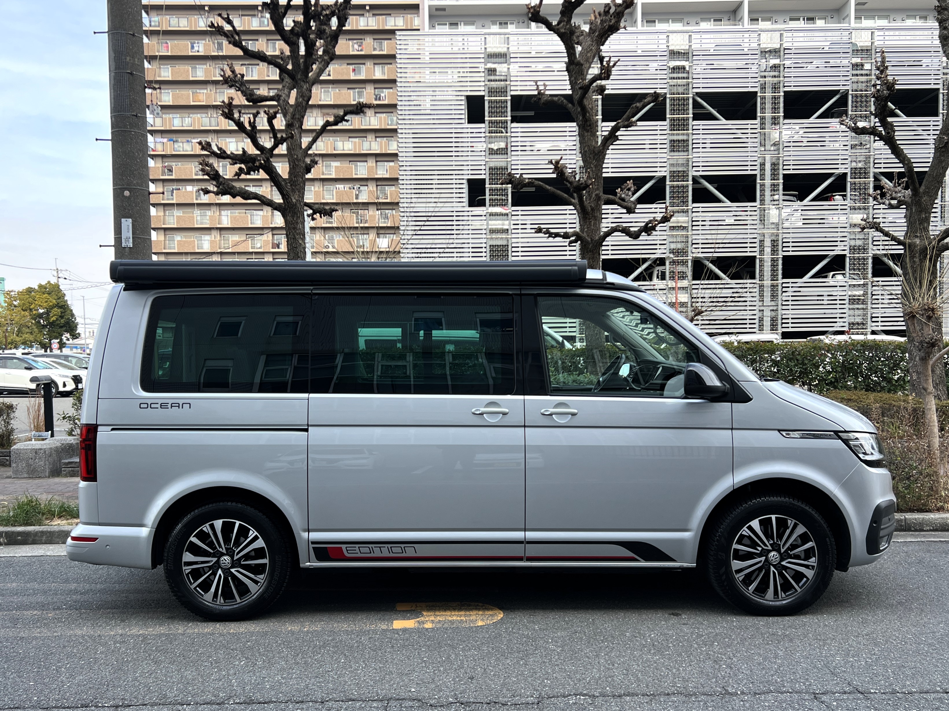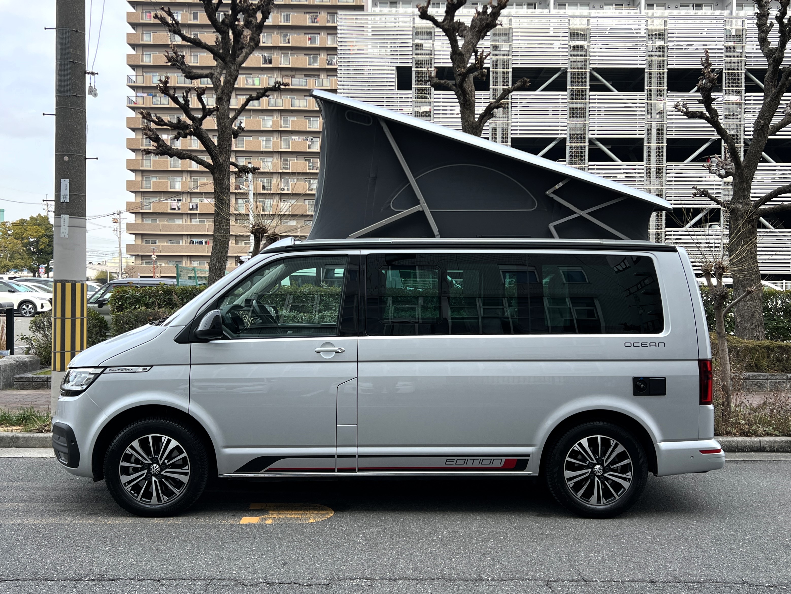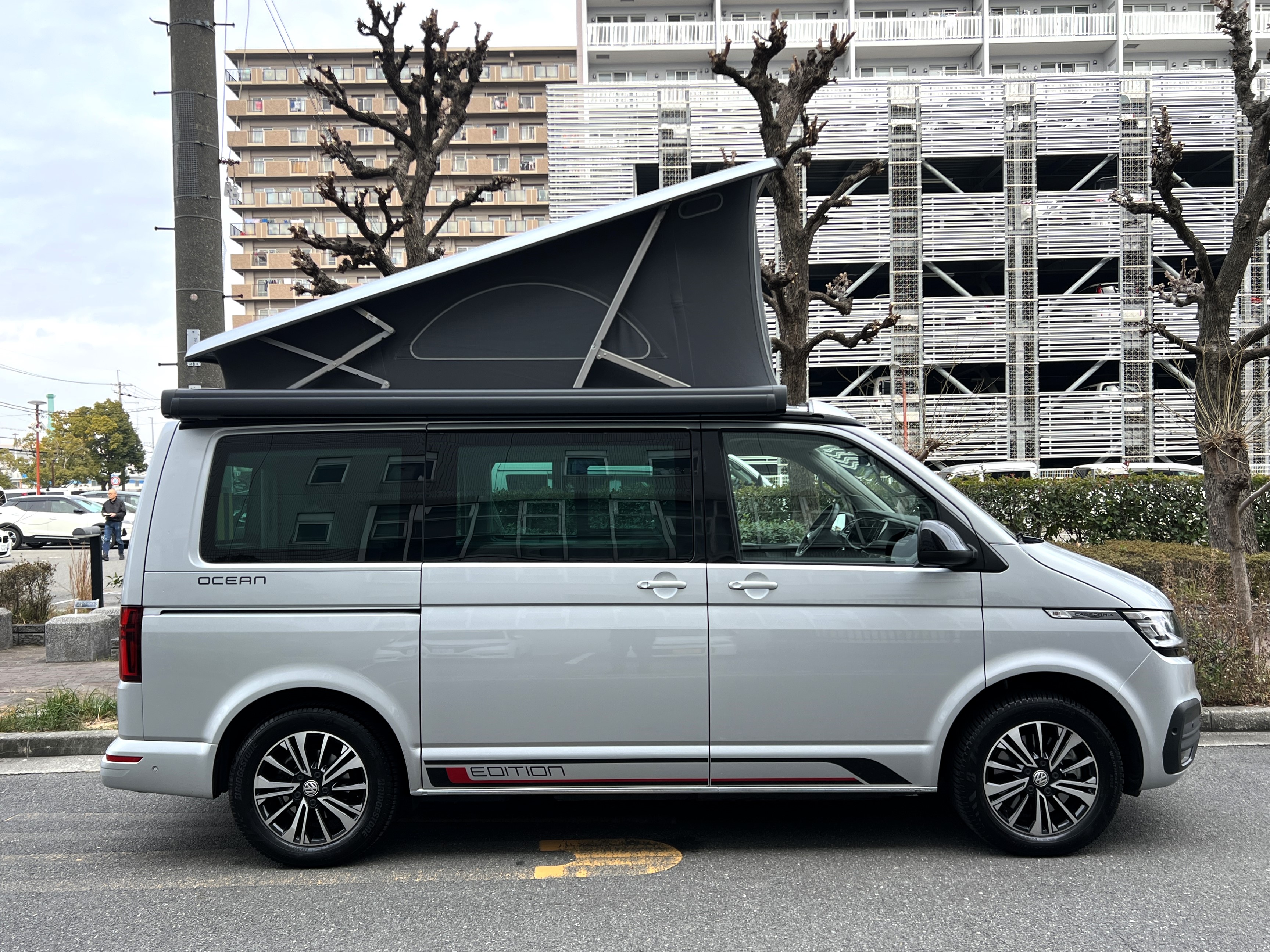 本国ドイツで実は大人気のシルバー、カリフォルニアエディションの登場です♬ 今回のマッチング車両は、本国ドイツで人気の高いシルバーカラーのカリフォルニアエディション。現オーナーさまが新車で手にされた一台です♫ ご納車後は、趣味のイベントへ参加するため全国津々浦々を走破。イベント前日の前泊にも大活躍し、カリフォルニアならではの機動力と快適性を存分に楽しまれてきました◎ その楽しさにすっかり魅了され、もっとカリフォルニアを楽しみたい!ということで、今回は別のカリフォルニアへお乗り換え。「本当に楽しくて最高のクルマです。次のオーナーさんにも大切に乗ってもらえたら嬉しいです。」そんな温かいメッセージとともに、次のオーナーさまへバトンを渡されることになりました。では、その銀メタオーシャンを見てまいりましょう♬ 「新車に一番近いカリ」そんな映画タイトルのようなフレーズが、まさにぴったりハマる一台で👍 ボディコンディションは文句なし。ルーフとミラーはグロスブラック仕様、さらにサイド&リアの専用エディションデカールが、リフレックスシルバーメタリックのボディと絶妙にマッチ◎ 結果として、想像以上にかなりオトコマエなルックスに仕上がっている仕様です👍 足元には大人気のアラカジュ(Aracaju)ホイールに、もちろん必須装備のサイドオーニング、そして電動ポップアップルーフもばっちり装備。さらにこの車両、DCC(アダプティブシャーシコントロール)も搭載。ダンパーの減衰力を好みに合わせて変更できるため、街乗りから長距離ドライブまで驚くほど快適な乗り味を実現しております。そして目的地に着けば、そのまま別荘に早変わり♫ 走って楽しい、泊まって嬉しい、暮らして快適。まさに理想のマイホームカーなんです👍 ぜひ一度、その魅力をご体験しにきてくださいませ。