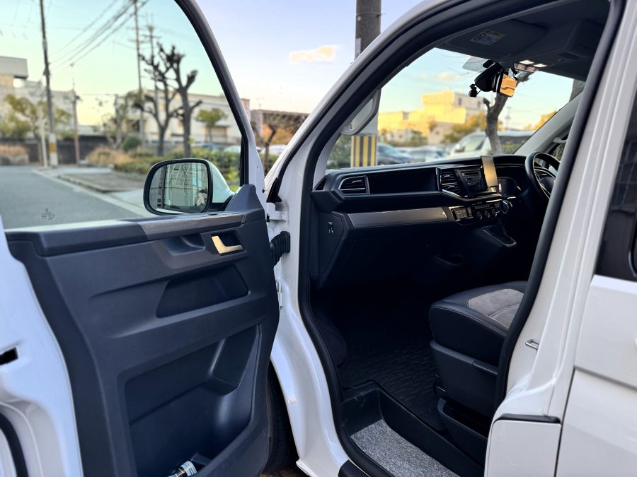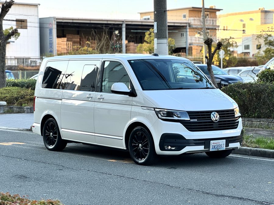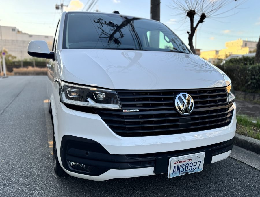 大人気の英国仕様 VW T6.1 カラベルより、その中でも最上位グレードにあたるエグゼクティブ4MOTIONが、オーナーマッチングに登場です♬ 乗用モデルならではの上質さをベースに、全体はスタイリッシュにまとめられ、キリっと引き締まった佇まいが印象的な一台。オンロードでの快適性はもちろん、4MOTIONならではの安定した走りが加わり、日常からロングドライブまで安心して付き合えるモデルです👍 現オーナーさまが大切にされてきた車両ですが、今回、車両整理のタイミングを迎えたことから、オーナーマッチングへの出品となりました。オーナーさまからは「とてもよく走り、安心感のある4MOTIONです。ぜひ次のオーナーさまにも大切に乗っていただけたら嬉しいです」というメッセージもいただいております◎さて、そのカラベルを見てまいりましょう♬ まず目を引くのは、不動の人気を誇るホワイトボディ。そこにビルシュタインB14キットを組み合わせ、程よく車高を落とすことで、全体をスタイリッシュに引き締めています♬ 足元は純正アルミホイールを活かしつつ、フロントグリルのクローム部分と一緒にブラックアウト化。派手さに頼ることなく、あくまで“純正然”とした佇まいを大切にしながら、要所を押さえた大人のカスタムが施されています◎ その結果、主張しすぎることはないのに、確かな存在感があるエクステリアに👍 イヤミがなく、それでいてしっかりとカッコいい。まさに、分かる人には分かるオトナの一台に仕上がっています。お次はインテリア。ドアを開けた瞬間に感じるのは、全体に行き渡った清潔感と上質な空気感。日本でインストールされたフローティングナビに加え、デジタルコックピット(デジタルメーター)を装備。視認性の高さはもちろん、エグゼクティブグレードらしい先進性と品の良さをしっかりと演出しています♬ シートはナッパレザーを使用したハーフレザー仕様。レイアウトは2-2-3の7人乗りを確保し、実用性と快適性を高いレベルで両立しています。特に注目したいのが、日本車ではあまり見かけないセカンドシート。回転機構に加え、前後スライドも可能で、センターに備えられたマルチファンクションテーブルを使えば、車内は一瞬でリビングルームにも、簡易的な会議室にも姿を変えてくれるのです👍 それでいて、ほぼフルフラットへのシートアレンジも可能。平日はお子さまの送り迎えや日常使いに、週末はレジャーや軽い車中泊までこなしてくれる懐の深さがあるのです👍 左右のスライドドアとリアゲートは電動開閉可能です。最後は機関系。走りは軽快で、現在も快調そのもの◎ ディーゼルエンジンの要となるインジェクターは全数交換済み、あわせてビルシュタイン製の車高調サスペンションも数千キロ前にリフレッシュされています👍 これらの費用はあわせると3桁万円規模、これからするか、もうしているか、ここの違いは価値の差が大きいですね👍走行距離はやや多めですが、内容を見れば不安は感じませんね笑。おかげで高速域での安定性はさらに非常に高く、〇50km/h前後の速度でも安心感は抜群(出したらあかんけど笑)。東京―大阪間の移動も、余裕をもってこなせる走りです♬ 燃費もディーゼルならではで、走り方次第では往復無給油も期待できそうです👍 日常からロングドライブまで幅広く対応する、まさにマルチな一台。ぜひあなたのパートナーにお選びください。皆さまからのお問い合わせをお待ちしております。