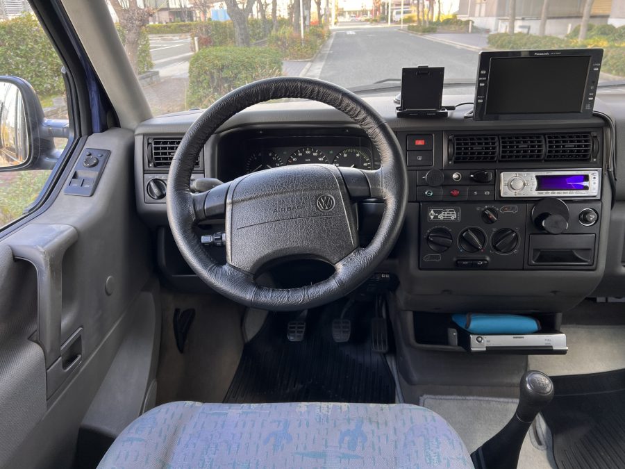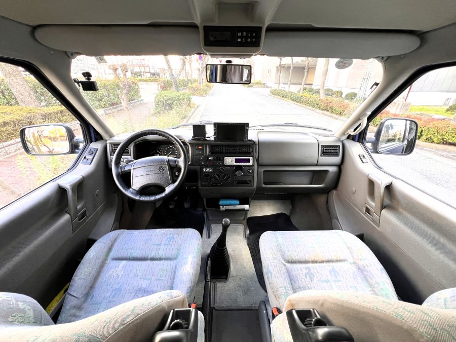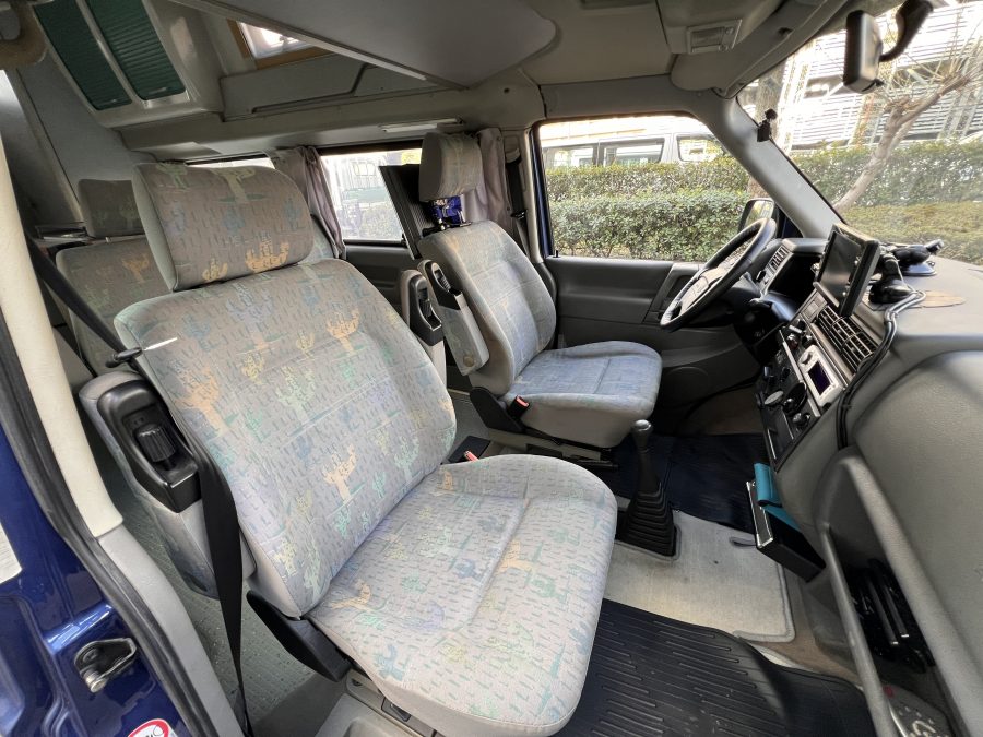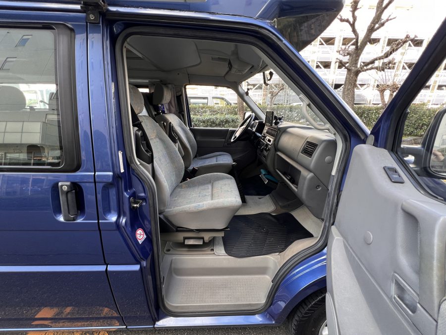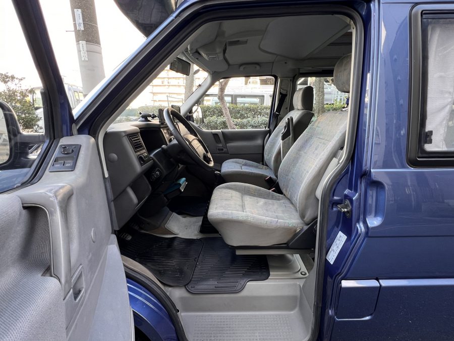 さて、そのムービングホームを見てまいりましょう♬ まず目に入るのは、色鮮やかなアイランドブルーメタリックのボディカラー。ありそうで意外と出会えない色味で、山でも海でも、街中でも自然に溶け込む万能さがあります。ルーフ部分は約4年前にリペイント済み👍 前後には、みんな大好きな樹脂製ブラックバンパーを装着し、足元は純正アルミホイール、さらにFIAMMA製サイドオーニングもばっちり備わっています☺ 実用性と雰囲気、どちらも抜かりありませんね。個人的なお気に入りポイントは、クォーターパネルに刻まれた「CALIFORNIA」刺さるディテールです笑。欧州では比較的よく見かけますが、日本では希少なハイトップ仕様。全高は約2.61mとなるため、基本的には2.7mを目安に橋げた下などを意識する必要はありますが、その分、車内は立ったまま動けるストレスフリーな空間が広がっていますよ👍 お次はインテリア。これまで大切にされてきたこともあり、全体的にとても清潔感のあるコンディション。年式を感じさせない、気持ちよく使われてきた室内です👍 クラシックなオーディオもこだわられ、ヘッドステレオデッキはスペアも付属するとのことで、こうした部分にも愛情を感じますね♬ また、車中泊時に電装系をサブバッテリーへ切り替えるスイッチも後付け済みで実際の旅を想定した、うれしい装備ですね。オドメーターの液晶が時々薄くなり読みづらい場合があるようですが走行には問題なく、この年代のT4では時々見られる一方、逆にこの年式ではダブルエアバッグが装備されておりますので、安全面では嬉しい装備です👍 前述のとおり、ハイトップならではの室内高の余裕は特筆もの。ルーフを展開しなくても直立が可能で、車内での動作はとってもストレスフリー♬ 窓も多く設けられているモデルのため、開放感も抜群です。シンク、コンロ、冷蔵庫はすべて完備され、これまでも実際に使用されてきたとのこと。さらにFFヒーターも装備されており、季節を問わず快適に過ごせます。このサイズならではのトイレも備わっていますが、こちらは未使用。確かにお手入れを考えると、ラップポンなどへ置き換えるのも良い選択かもしれませんね♪ そのほかの仕様や使い方については、下記に同系モデルの参考動画をリンクしておりますので、ぜひご覧ください。このクルマで過ごす時間が、より具体的にイメージできるかと思います♬ さて、最後は機関系。まずは、下記のメンテナンス記録をご覧ください。正直なところ、タイピングするのも大変なほどの内容で、この一台がどれだけ大切にされてきたかが、履歴からしっかり伝わってきます👍 実は記載されていないものの、前オーナーさまが新車時から残していた記録も存在しており、この車両の履歴はかなり明確です。血統書付きのようなものでしょうか笑。オーナーマッチング出品の直前まで、日常のアシとして普通に使われていたこともあり、エンジン、そしてマニュアルミッションのフィーリングはとてもスムーズ。ミッション操作も特殊なクセはなく、軽いタッチで自然に扱っていただけます♬ 走行距離はそれなりに重ねていますが、少し前にはディーゼル噴射ポンプ、タイミングベルト、さらにマニュアルシフトリンケージまで交換済み。しっかりと「使い続ける前提」で手が入れられてきた一台です。もちろん、今後も年式なりのメンテナンスルーティンは必要になりますが、ここまで継続的に、かつ丁寧に整備されてきた個体は、正直なかなか出会えるものではありません♬ 走るための道具であり、過ごすための空間でもある一台。次はどこを“今日の家”にするのか、ぜひその続きを託してみてください。皆さまからのお問い合わせを心よりお待ちしております。
