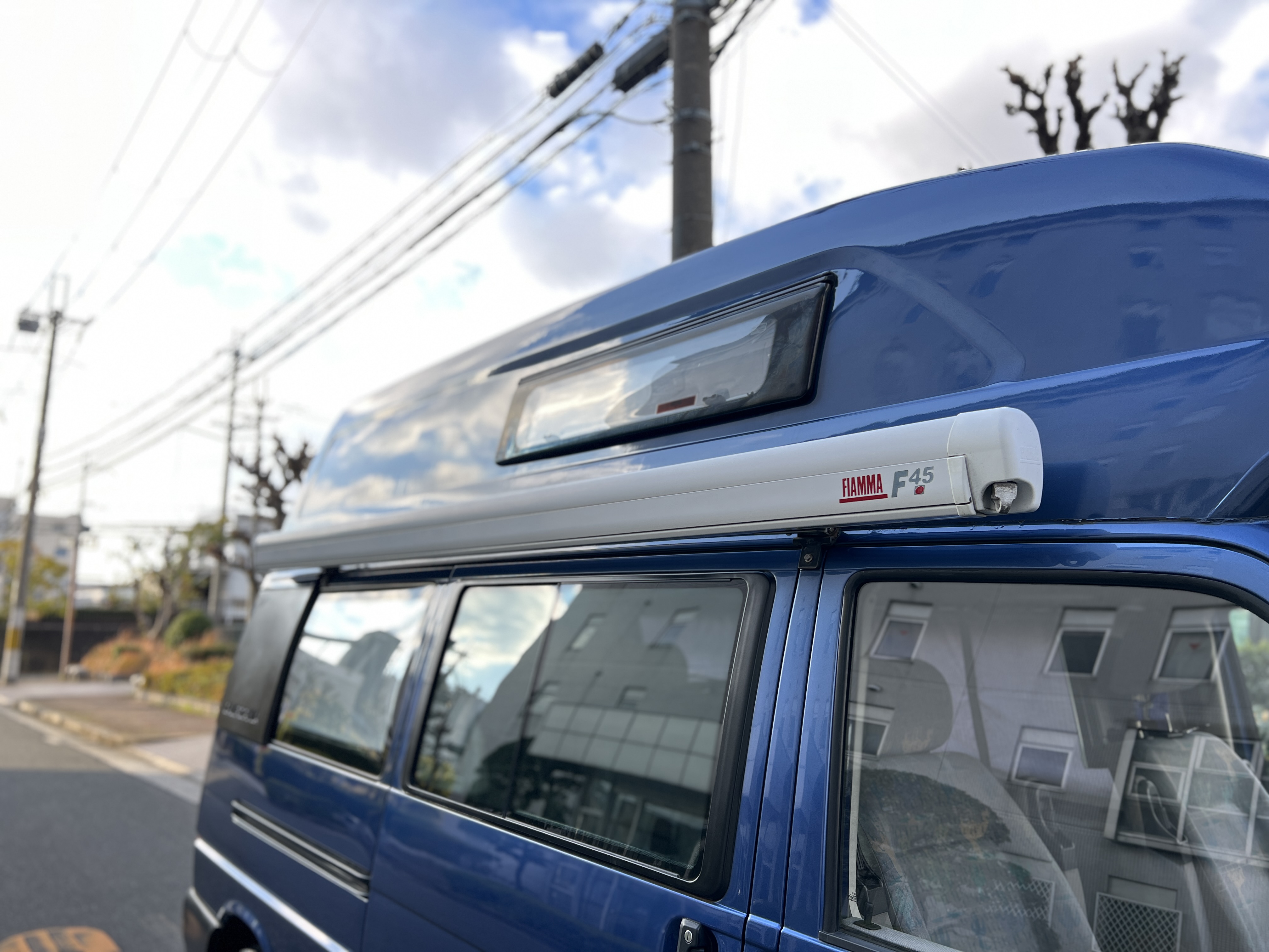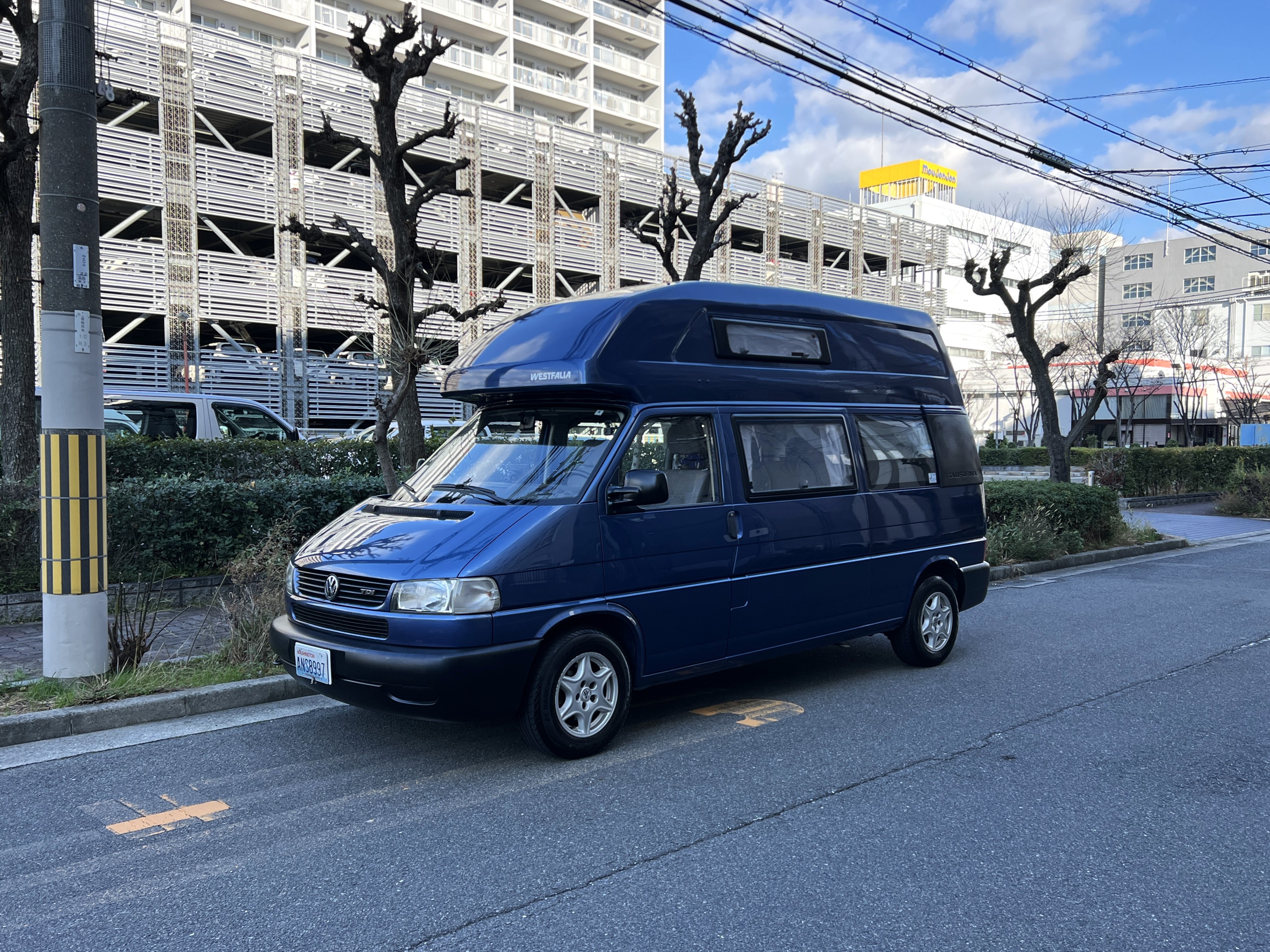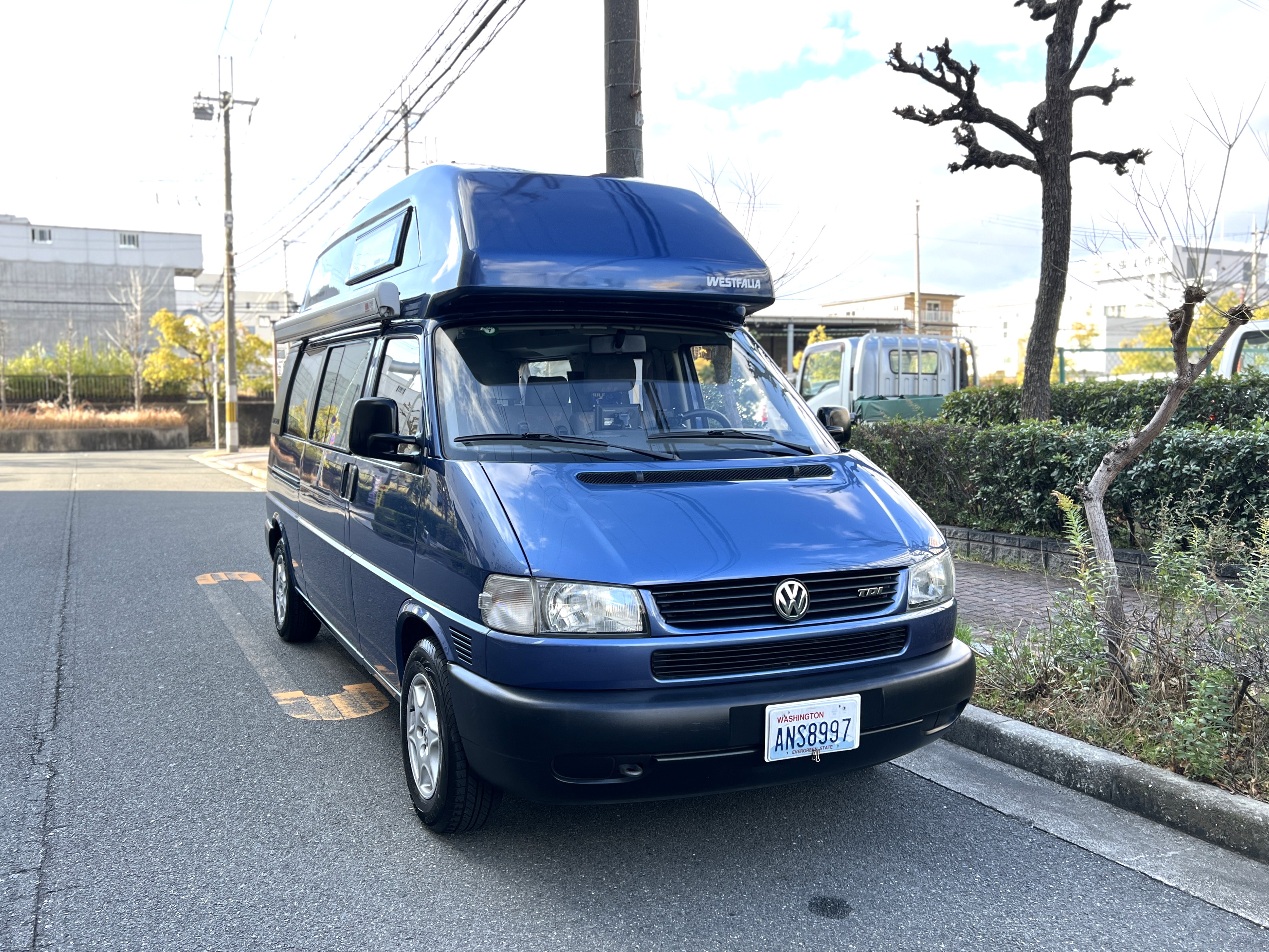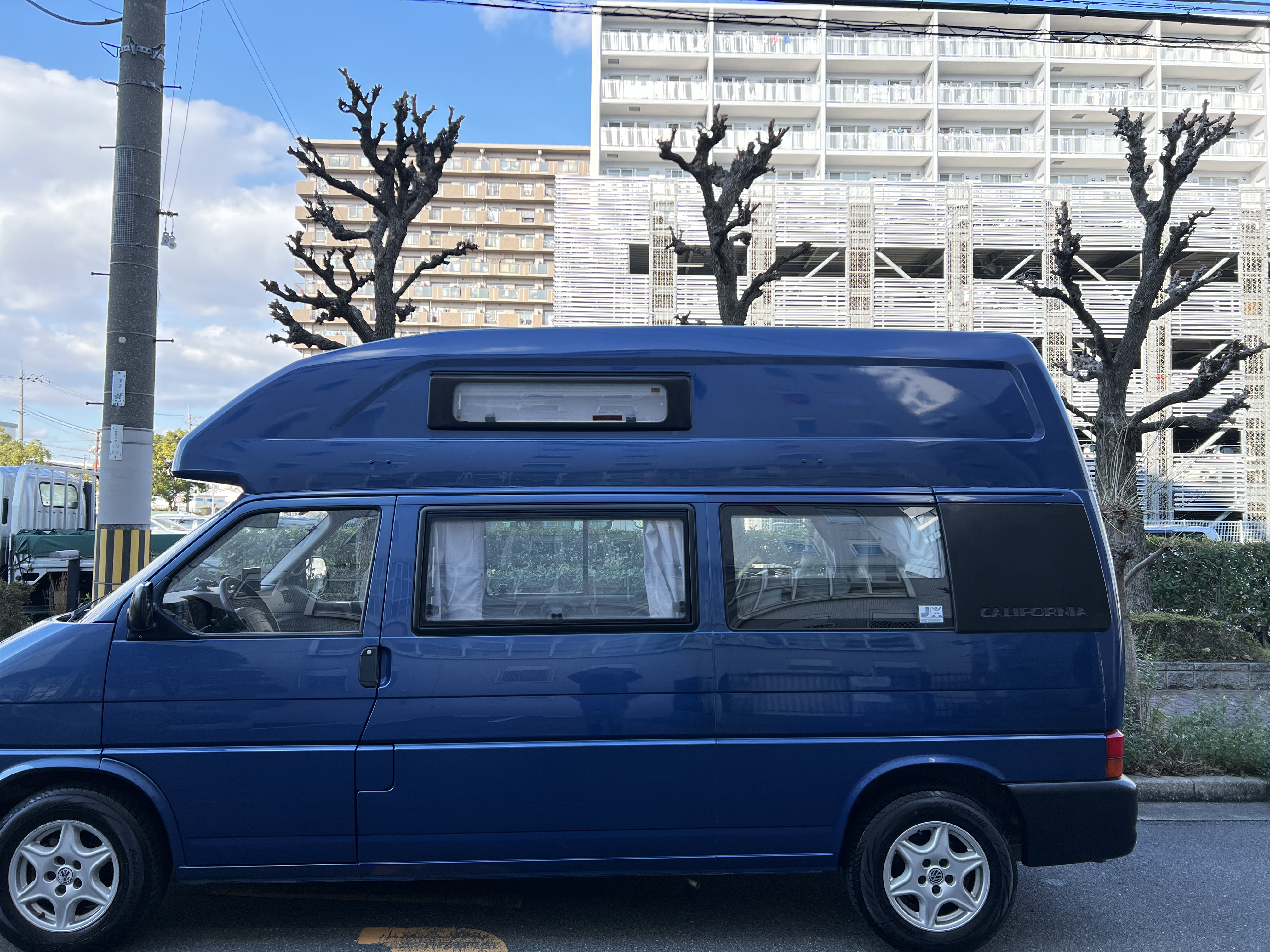 さて、そのムービングホームを見てまいりましょう♬ まず目に入るのは、色鮮やかなアイランドブルーメタリックのボディカラー。ありそうで意外と出会えない色味で、山でも海でも、街中でも自然に溶け込む万能さがあります。ルーフ部分は約4年前にリペイント済み👍 前後には、みんな大好きな樹脂製ブラックバンパーを装着し、足元は純正アルミホイール、さらにFIAMMA製サイドオーニングもばっちり備わっています☺ 実用性と雰囲気、どちらも抜かりありませんね。個人的なお気に入りポイントは、クォーターパネルに刻まれた「CALIFORNIA」刺さるディテールです笑。欧州では比較的よく見かけますが、日本では希少なハイトップ仕様。全高は約2.61mとなるため、基本的には2.7mを目安に橋げた下などを意識する必要はありますが、その分、車内は立ったまま動けるストレスフリーな空間が広がっていますよ👍 お次はインテリア。これまで大切にされてきたこともあり、全体的にとても清潔感のあるコンディション。年式を感じさせない、気持ちよく使われてきた室内です👍 クラシックなオーディオもこだわられ、ヘッドステレオデッキはスペアも付属するとのことで、こうした部分にも愛情を感じますね♬ また、車中泊時に電装系をサブバッテリーへ切り替えるスイッチも後付け済みで実際の旅を想定した、うれしい装備ですね。オドメーターの液晶が時々薄くなり読みづらい場合があるようですが走行には問題なく、この年代のT4では時々見られる一方、逆にこの年式ではダブルエアバッグが装備されておりますので、安全面では嬉しい装備です👍 前述のとおり、ハイトップならではの室内高の余裕は特筆もの。ルーフを展開しなくても直立が可能で、車内での動作はとってもストレスフリー♬ 窓も多く設けられているモデルのため、開放感も抜群です。シンク、コンロ、冷蔵庫はすべて完備され、これまでも実際に使用されてきたとのこと。さらにFFヒーターも装備されており、季節を問わず快適に過ごせます。このサイズならではのトイレも備わっていますが、こちらは未使用。確かにお手入れを考えると、ラップポンなどへ置き換えるのも良い選択かもしれませんね♪ そのほかの仕様や使い方については、下記に同系モデルの参考動画をリンクしておりますので、ぜひご覧ください。このクルマで過ごす時間が、より具体的にイメージできるかと思います♬ さて、最後は機関系。まずは、下記のメンテナンス記録をご覧ください。正直なところ、タイピングするのも大変なほどの内容で、この一台がどれだけ大切にされてきたかが、履歴からしっかり伝わってきます👍 実は記載されていないものの、前オーナーさまが新車時から残していた記録も存在しており、この車両の履歴はかなり明確です。血統書付きのようなものでしょうか笑。オーナーマッチング出品の直前まで、日常のアシとして普通に使われていたこともあり、エンジン、そしてマニュアルミッションのフィーリングはとてもスムーズ。ミッション操作も特殊なクセはなく、軽いタッチで自然に扱っていただけます♬ 走行距離はそれなりに重ねていますが、少し前にはディーゼル噴射ポンプ、タイミングベルト、さらにマニュアルシフトリンケージまで交換済み。しっかりと「使い続ける前提」で手が入れられてきた一台です。もちろん、今後も年式なりのメンテナンスルーティンは必要になりますが、ここまで継続的に、かつ丁寧に整備されてきた個体は、正直なかなか出会えるものではありません♬ 走るための道具であり、過ごすための空間でもある一台。次はどこを“今日の家”にするのか、ぜひその続きを託してみてください。皆さまからのお問い合わせを心よりお待ちしております。