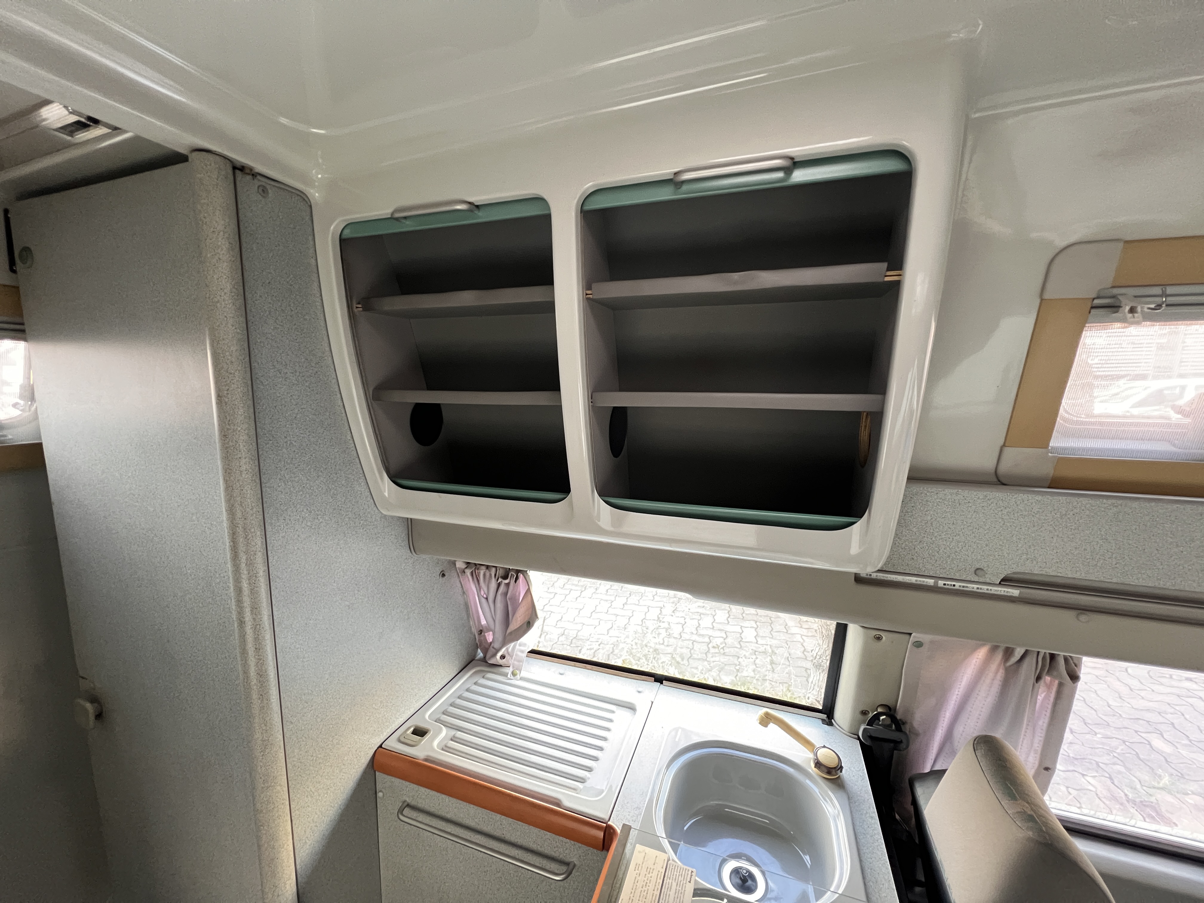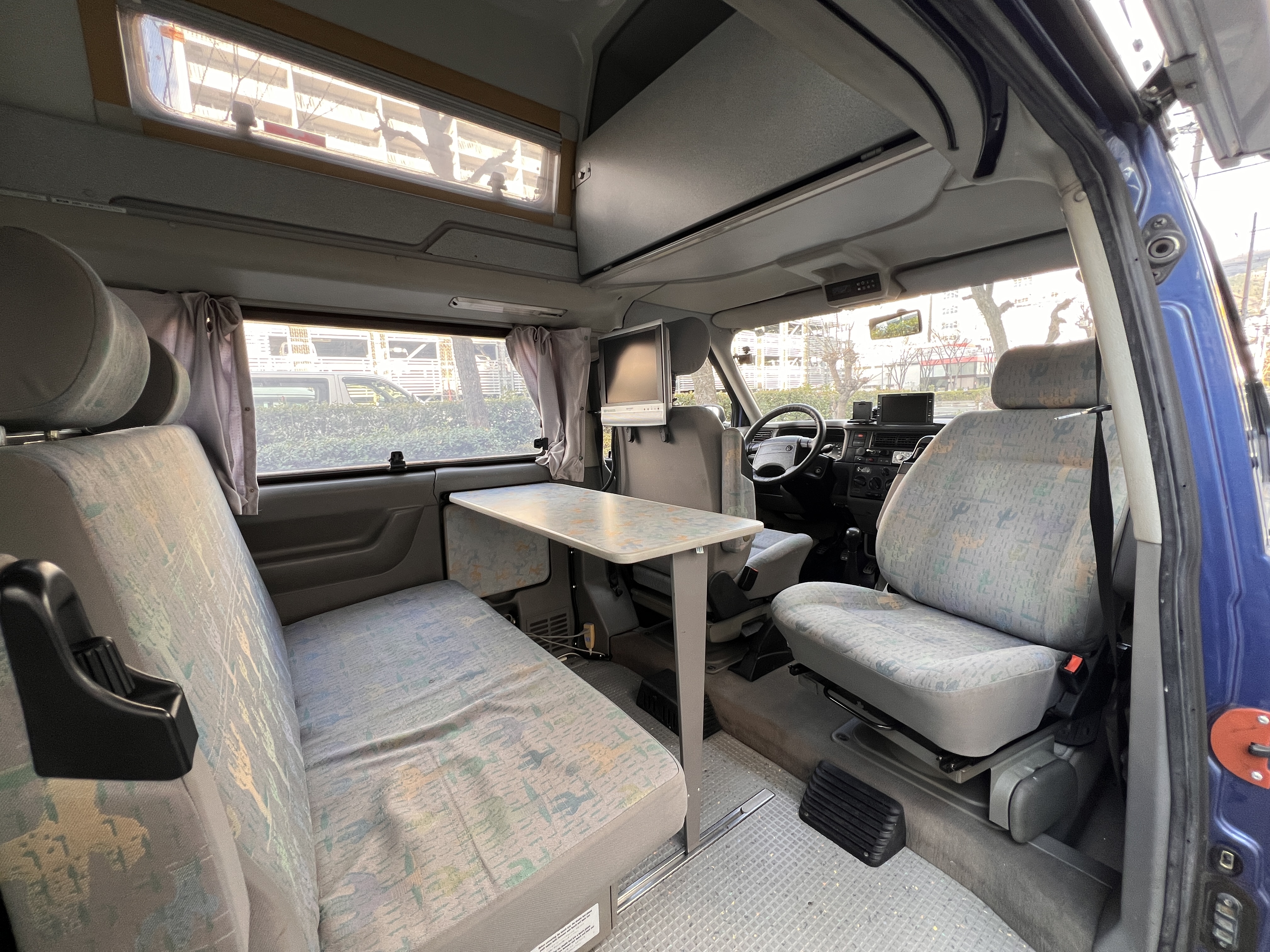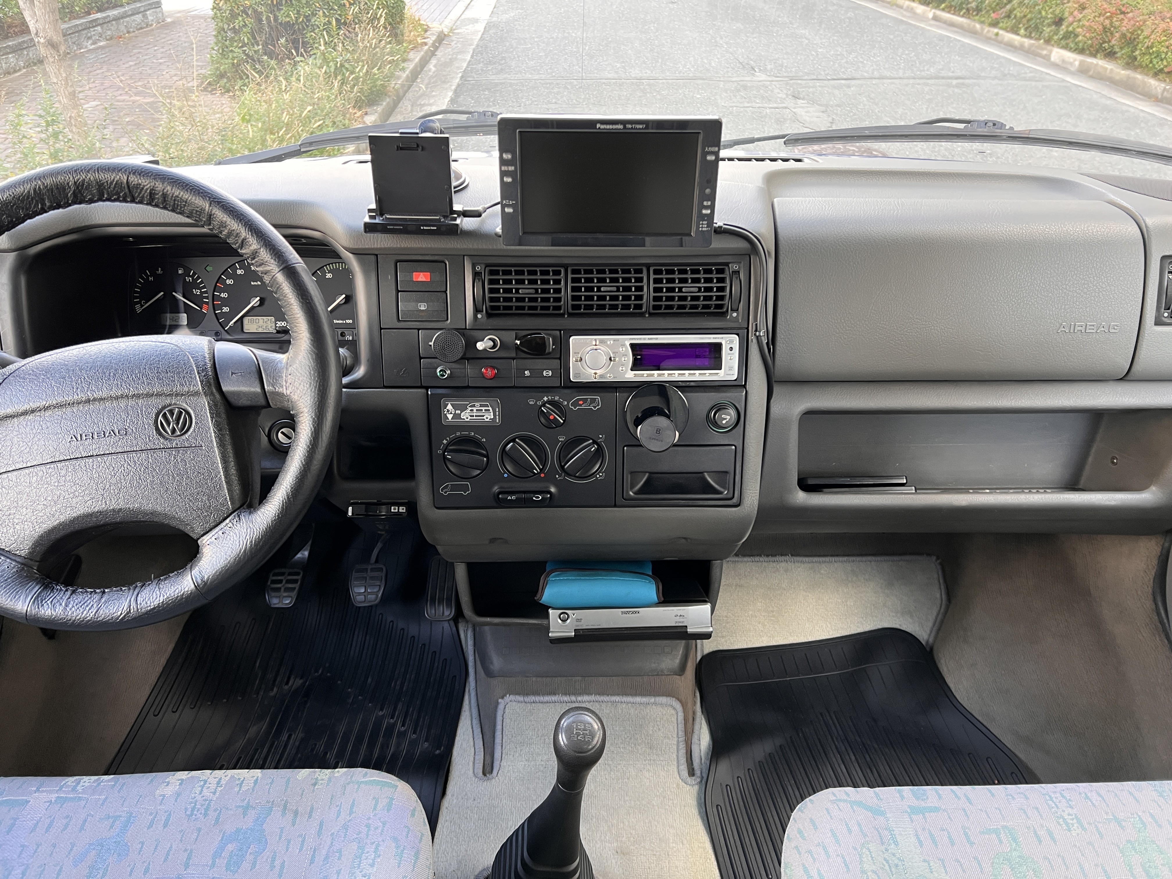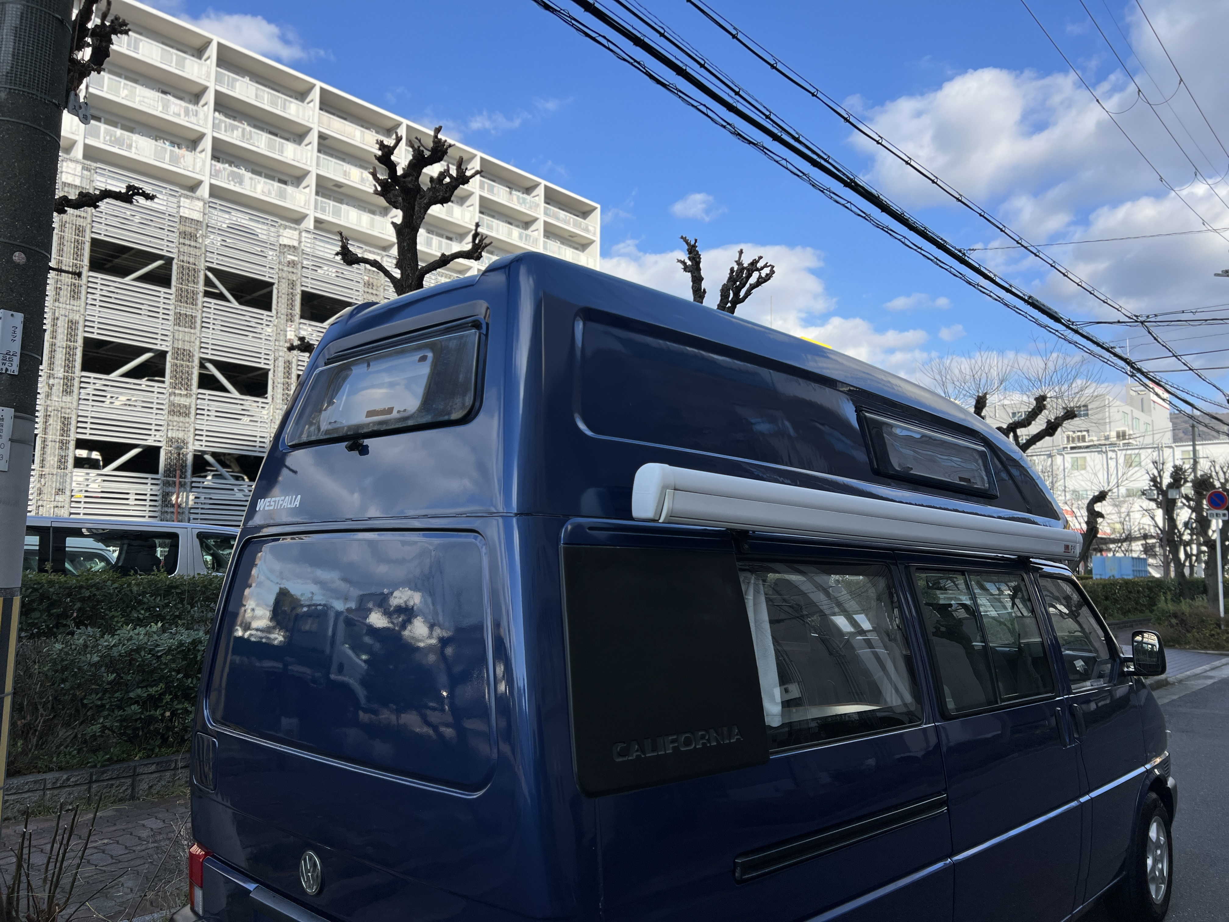 さて、そのムービングホームを見てまいりましょう♬ まず目に入るのは、色鮮やかなアイランドブルーメタリックのボディカラー。ありそうで意外と出会えない色味で、山でも海でも、街中でも自然に溶け込む万能さがあります。ルーフ部分は約4年前にリペイント済み👍 前後には、みんな大好きな樹脂製ブラックバンパーを装着し、足元は純正アルミホイール、さらにFIAMMA製サイドオーニングもばっちり備わっています☺ 実用性と雰囲気、どちらも抜かりありませんね。個人的なお気に入りポイントは、クォーターパネルに刻まれた「CALIFORNIA」刺さるディテールです笑。欧州では比較的よく見かけますが、日本では希少なハイトップ仕様。全高は約2.61mとなるため、基本的には2.7mを目安に橋げた下などを意識する必要はありますが、その分、車内は立ったまま動けるストレスフリーな空間が広がっていますよ👍 お次はインテリア。これまで大切にされてきたこともあり、全体的にとても清潔感のあるコンディション。年式を感じさせない、気持ちよく使われてきた室内です👍 クラシックなオーディオもこだわられ、ヘッドステレオデッキはスペアも付属するとのことで、こうした部分にも愛情を感じますね♬ また、車中泊時に電装系をサブバッテリーへ切り替えるスイッチも後付け済みで実際の旅を想定した、うれしい装備ですね。オドメーターの液晶が時々薄くなり読みづらい場合があるようですが走行には問題なく、この年代のT4では時々見られる一方、逆にこの年式ではダブルエアバッグが装備されておりますので、安全面では嬉しい装備です👍 前述のとおり、ハイトップならではの室内高の余裕は特筆もの。ルーフを展開しなくても直立が可能で、車内での動作はとってもストレスフリー♬ 窓も多く設けられているモデルのため、開放感も抜群です。シンク、コンロ、冷蔵庫はすべて完備され、これまでも実際に使用されてきたとのこと。さらにFFヒーターも装備されており、季節を問わず快適に過ごせます。このサイズならではのトイレも備わっていますが、こちらは未使用。確かにお手入れを考えると、ラップポンなどへ置き換えるのも良い選択かもしれませんね♪ そのほかの仕様や使い方については、下記に同系モデルの参考動画をリンクしておりますので、ぜひご覧ください。このクルマで過ごす時間が、より具体的にイメージできるかと思います♬ さて、最後は機関系。まずは、下記のメンテナンス記録をご覧ください。正直なところ、タイピングするのも大変なほどの内容で、この一台がどれだけ大切にされてきたかが、履歴からしっかり伝わってきます👍 実は記載されていないものの、前オーナーさまが新車時から残していた記録も存在しており、この車両の履歴はかなり明確です。血統書付きのようなものでしょうか笑。オーナーマッチング出品の直前まで、日常のアシとして普通に使われていたこともあり、エンジン、そしてマニュアルミッションのフィーリングはとてもスムーズ。ミッション操作も特殊なクセはなく、軽いタッチで自然に扱っていただけます♬ 走行距離はそれなりに重ねていますが、少し前にはディーゼル噴射ポンプ、タイミングベルト、さらにマニュアルシフトリンケージまで交換済み。しっかりと「使い続ける前提」で手が入れられてきた一台です。もちろん、今後も年式なりのメンテナンスルーティンは必要になりますが、ここまで継続的に、かつ丁寧に整備されてきた個体は、正直なかなか出会えるものではありません♬ 走るための道具であり、過ごすための空間でもある一台。次はどこを“今日の家”にするのか、ぜひその続きを託してみてください。皆さまからのお問い合わせを心よりお待ちしております。