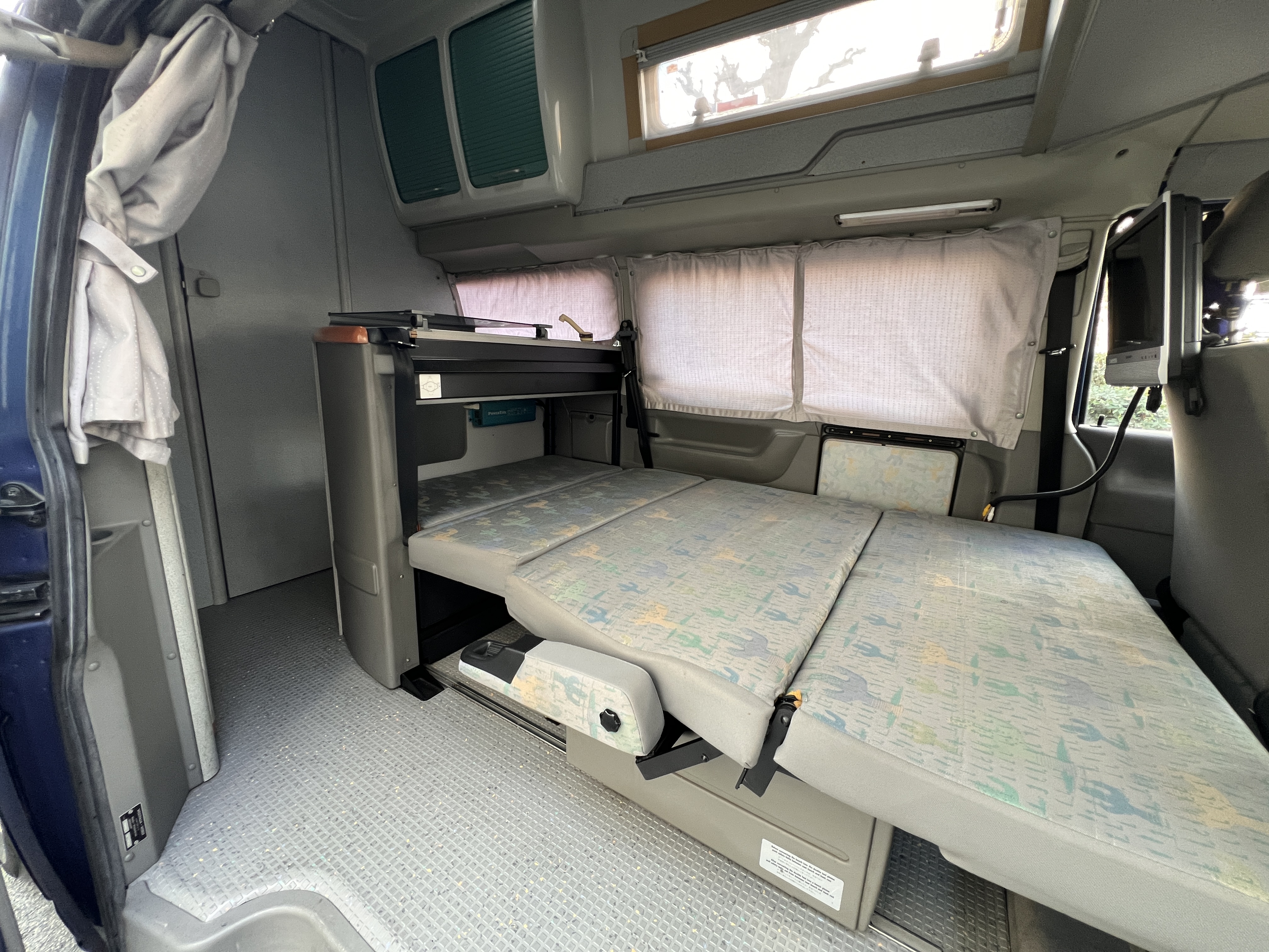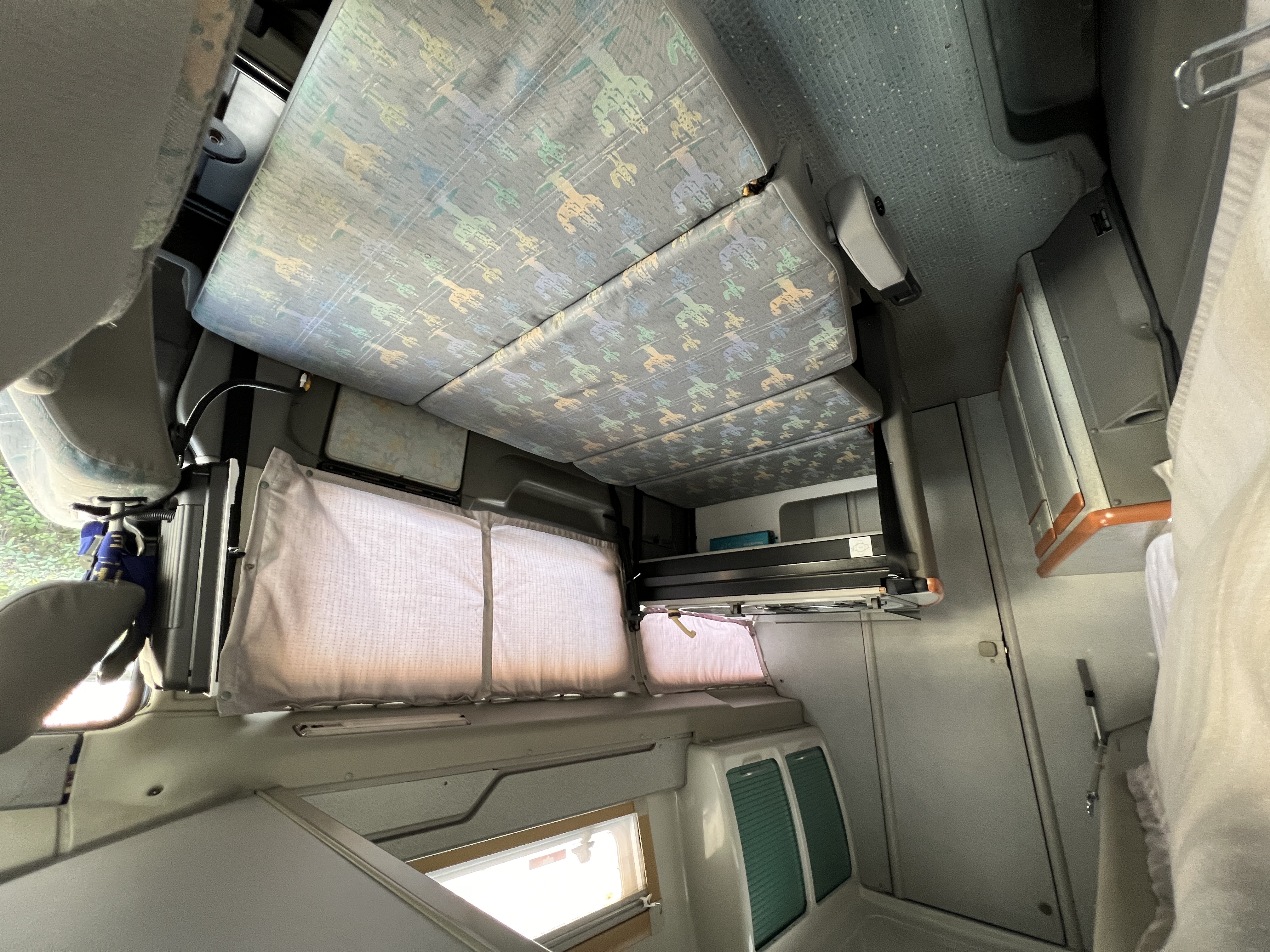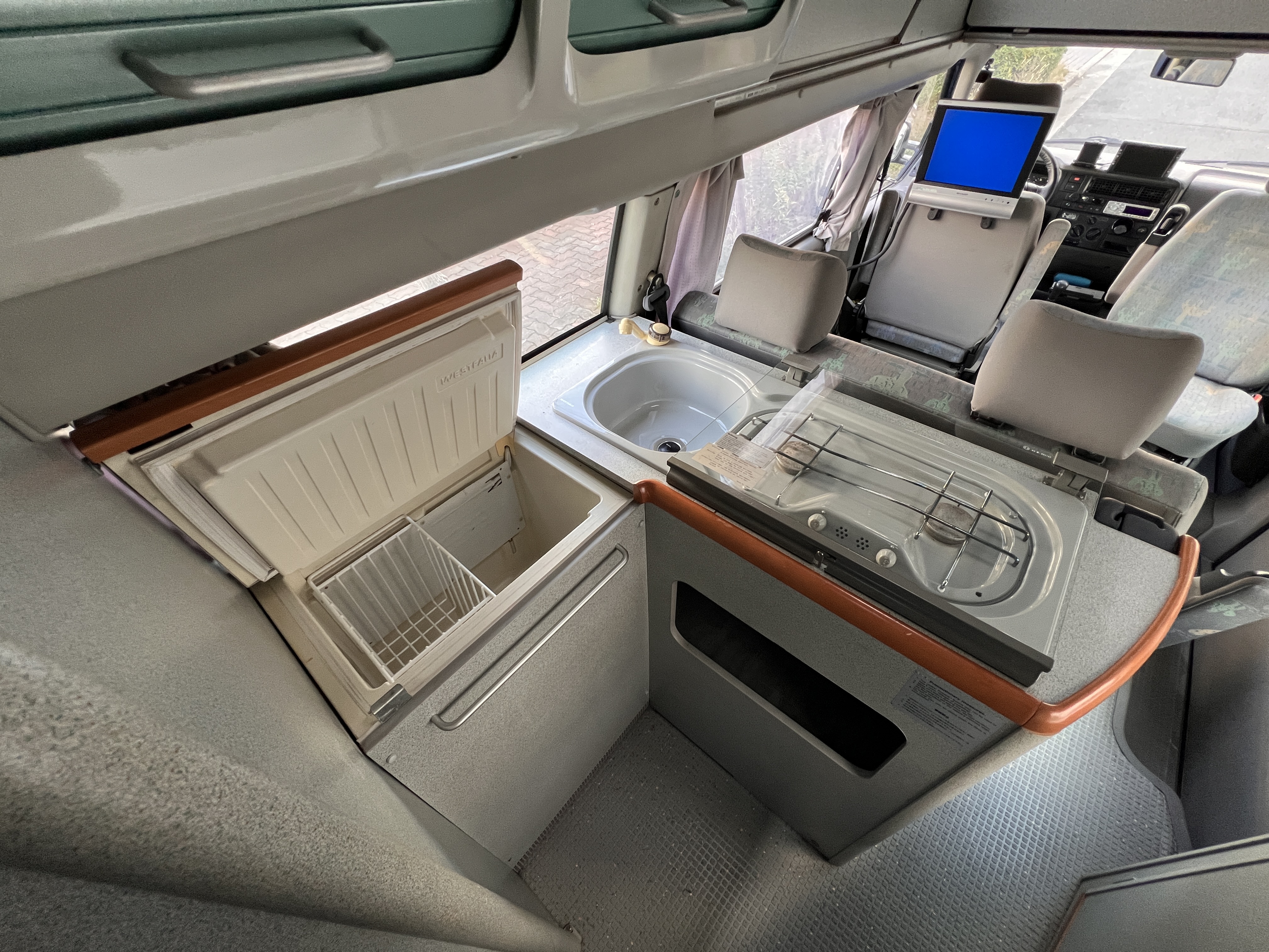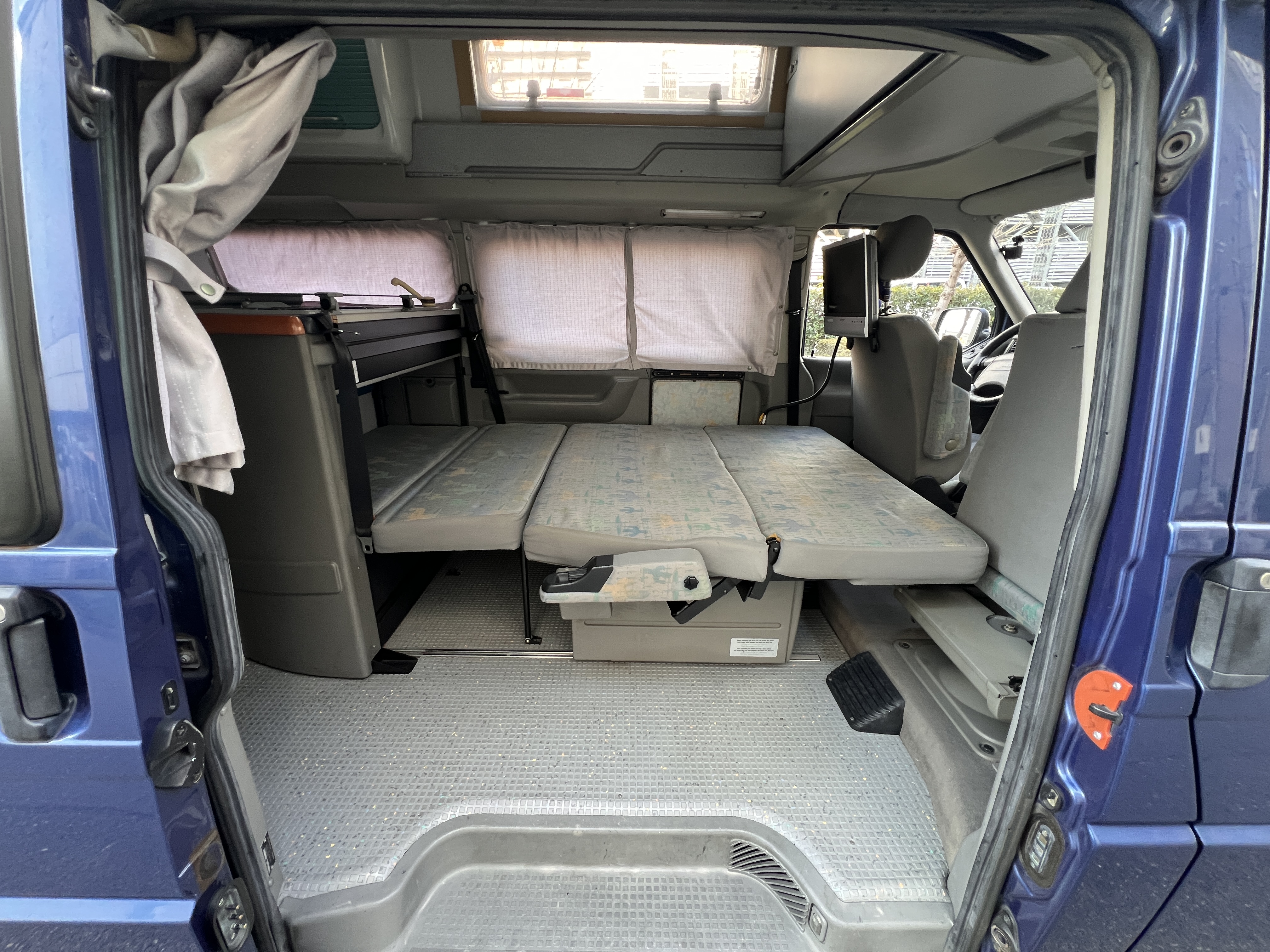 さて、そのムービングホームを見てまいりましょう♬ まず目に入るのは、色鮮やかなアイランドブルーメタリックのボディカラー。ありそうで意外と出会えない色味で、山でも海でも、街中でも自然に溶け込む万能さがあります。ルーフ部分は約4年前にリペイント済み👍 前後には、みんな大好きな樹脂製ブラックバンパーを装着し、足元は純正アルミホイール、さらにFIAMMA製サイドオーニングもばっちり備わっています☺ 実用性と雰囲気、どちらも抜かりありませんね。個人的なお気に入りポイントは、クォーターパネルに刻まれた「CALIFORNIA」刺さるディテールです笑。欧州では比較的よく見かけますが、日本では希少なハイトップ仕様。全高は約2.61mとなるため、基本的には2.7mを目安に橋げた下などを意識する必要はありますが、その分、車内は立ったまま動けるストレスフリーな空間が広がっていますよ👍 お次はインテリア。これまで大切にされてきたこともあり、全体的にとても清潔感のあるコンディション。年式を感じさせない、気持ちよく使われてきた室内です👍 クラシックなオーディオもこだわられ、ヘッドステレオデッキはスペアも付属するとのことで、こうした部分にも愛情を感じますね♬ また、車中泊時に電装系をサブバッテリーへ切り替えるスイッチも後付け済みで実際の旅を想定した、うれしい装備ですね。オドメーターの液晶が時々薄くなり読みづらい場合があるようですが走行には問題なく、この年代のT4では時々見られる一方、逆にこの年式ではダブルエアバッグが装備されておりますので、安全面では嬉しい装備です👍 前述のとおり、ハイトップならではの室内高の余裕は特筆もの。ルーフを展開しなくても直立が可能で、車内での動作はとってもストレスフリー♬ 窓も多く設けられているモデルのため、開放感も抜群です。シンク、コンロ、冷蔵庫はすべて完備され、これまでも実際に使用されてきたとのこと。さらにFFヒーターも装備されており、季節を問わず快適に過ごせます。このサイズならではのトイレも備わっていますが、こちらは未使用。確かにお手入れを考えると、ラップポンなどへ置き換えるのも良い選択かもしれませんね♪ そのほかの仕様や使い方については、下記に同系モデルの参考動画をリンクしておりますので、ぜひご覧ください。このクルマで過ごす時間が、より具体的にイメージできるかと思います♬ さて、最後は機関系。まずは、下記のメンテナンス記録をご覧ください。正直なところ、タイピングするのも大変なほどの内容で、この一台がどれだけ大切にされてきたかが、履歴からしっかり伝わってきます👍 実は記載されていないものの、前オーナーさまが新車時から残していた記録も存在しており、この車両の履歴はかなり明確です。血統書付きのようなものでしょうか笑。オーナーマッチング出品の直前まで、日常のアシとして普通に使われていたこともあり、エンジン、そしてマニュアルミッションのフィーリングはとてもスムーズ。ミッション操作も特殊なクセはなく、軽いタッチで自然に扱っていただけます♬ 走行距離はそれなりに重ねていますが、少し前にはディーゼル噴射ポンプ、タイミングベルト、さらにマニュアルシフトリンケージまで交換済み。しっかりと「使い続ける前提」で手が入れられてきた一台です。もちろん、今後も年式なりのメンテナンスルーティンは必要になりますが、ここまで継続的に、かつ丁寧に整備されてきた個体は、正直なかなか出会えるものではありません♬ 走るための道具であり、過ごすための空間でもある一台。次はどこを“今日の家”にするのか、ぜひその続きを託してみてください。皆さまからのお問い合わせを心よりお待ちしております。
