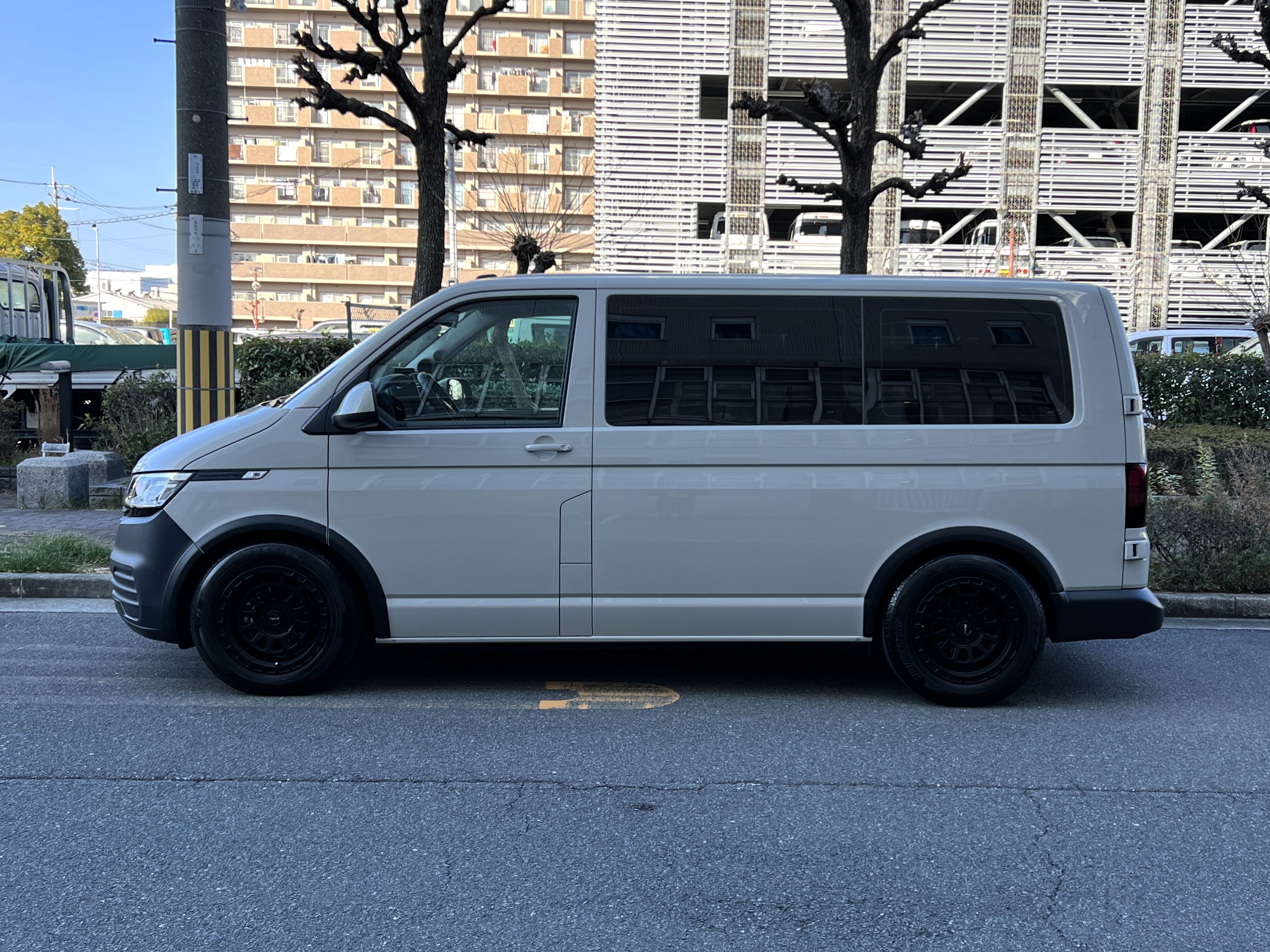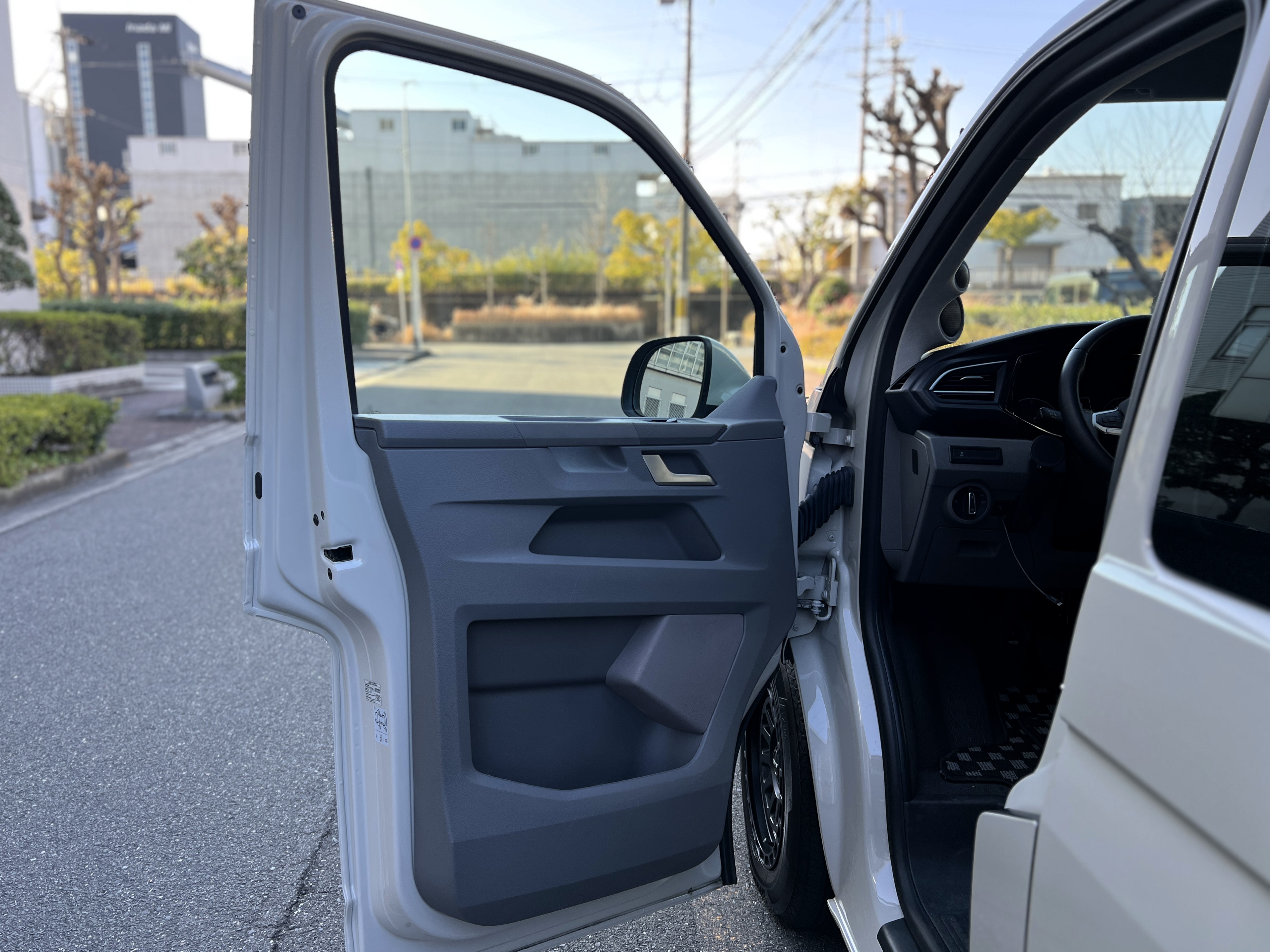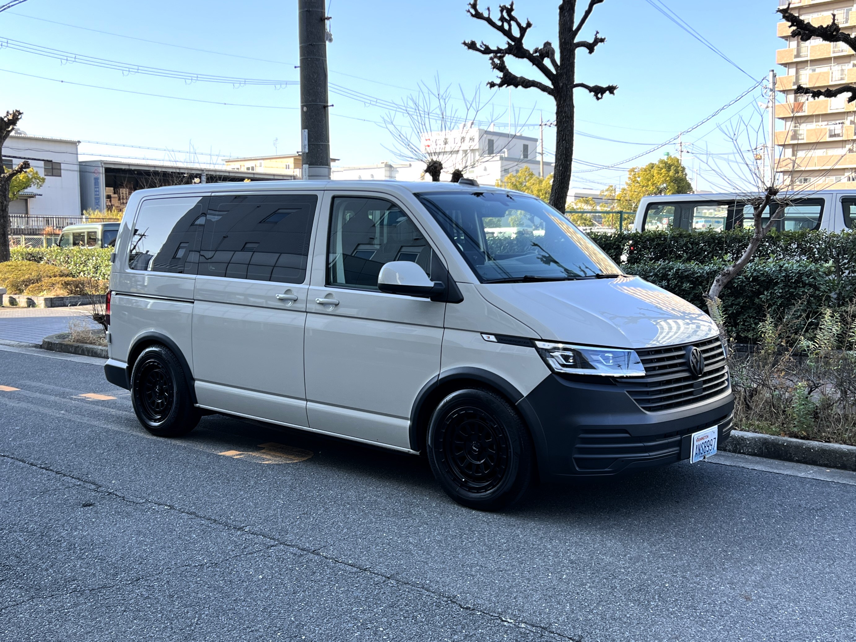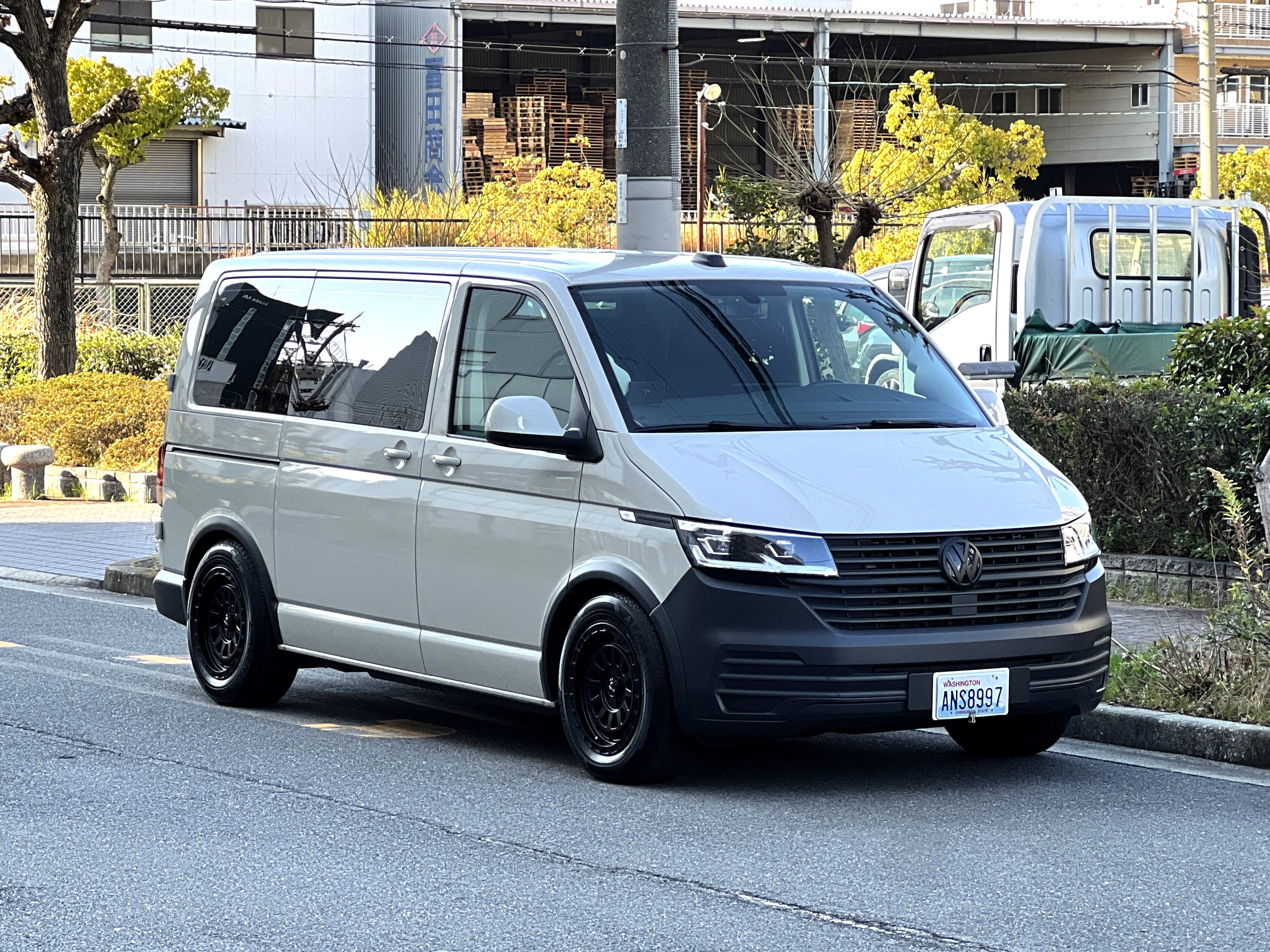 ご無沙汰のウイングドア◎ 観音開きのトランスポーターが登場です♬ バン好きの皆さま、お待たせしました。リア観音開き=ウイングドアのトランスポーター、久々の登場です👍 現オーナーさまがこのコンビ”手に入れられたのは約2年半前。未登録の新車状態からスタートし、あえての商用バン仕様をベースに、自らのスタイルに合わせてカスタムを楽しんでこられました◎ バン本来の無骨さはそのままに、Aピラーにはスピーカーを加工してインストール。さらには、遮音ガラスへと変更することでサウンド環境にもこだわりを♫ 見た目も中身も、自分仕様に仕立てたい、そんな想いがしっかり詰まった一台です👍 今回は、車両整理とともにT7カリフォルニアへのお乗り換えということで、このコンビをオーナーマッチングにてご出品いただきました。「ぜひこのトランスポーターでVANを楽しむ ということを体感してもらえたら嬉しいです」そんなあたたかなメッセージをいただいております。では、そのVANを見てまいりましょう。まず目を引くのは、左右非対称な佇まいがなんともイケている観音開きドア。使い勝手だけを考えれば跳ね上げ式に軍配が上がるのですが、なぜか心を掴まれるのは、やはりこの観音開き♪ 理屈ではなく、感情に訴えてくる部分ですね◎ 貨物寄りの貨客兼用・商用バンベースに、フェンダーアーチプロテクションとNAVISホイールを組み合わせ、一見するとホットなオフロードカスタムかと思いきや、足元にはあえてSUV向けオンロードタイヤ、ブリヂストンALENZAをチョイス。さらにビルシュタイン B14車高調をセットし、実用性と走りをしっかり意識した、少し未来感のあるプロポーションに仕上げられています👍 フロントグリルと前後のVWサインはブラックアウト化。やり過ぎることなく、それでいて確実に新しい。きちんと“別カテゴリー”のカスタムとして成立している点が、このクルマの上手さです◎ そしてボディカラーは、大人気のアスコットグレイ。控えめに言っても、、これはもうセンスの塊ですね笑。