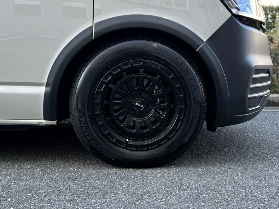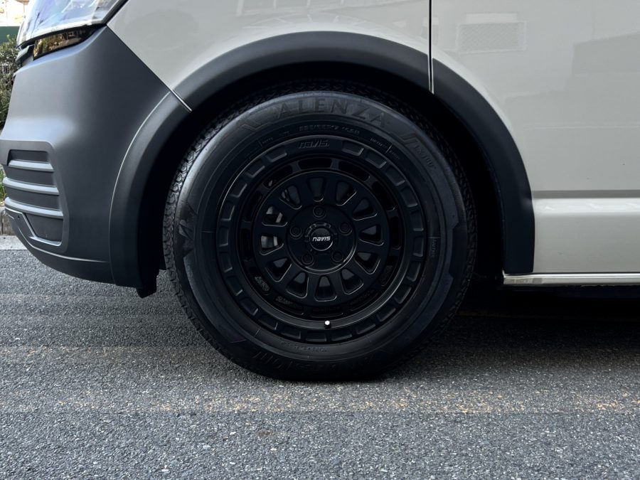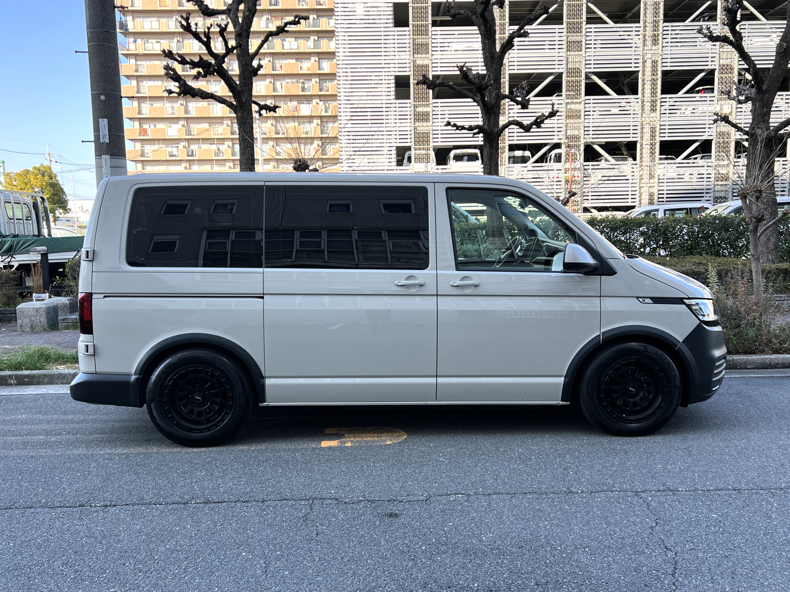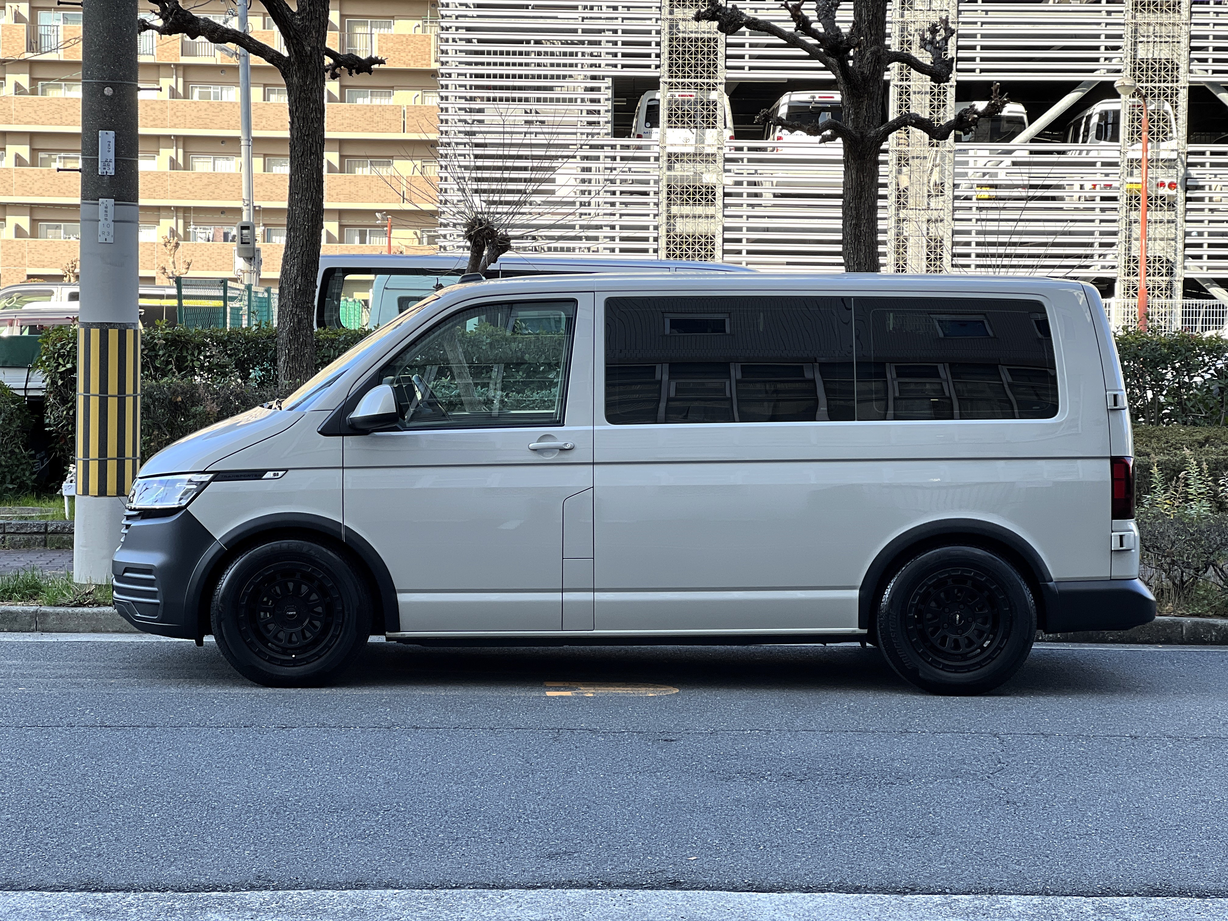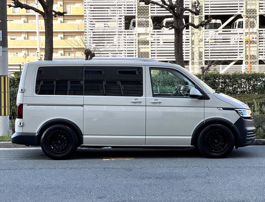 ご無沙汰のウイングドア◎ 観音開きのトランスポーターが登場です♬ バン好きの皆さま、お待たせしました。リア観音開き=ウイングドアのトランスポーター、久々の登場です👍 現オーナーさまがこのコンビ”手に入れられたのは約2年半前。未登録の新車状態からスタートし、あえての商用バン仕様をベースに、自らのスタイルに合わせてカスタムを楽しんでこられました◎ バン本来の無骨さはそのままに、Aピラーにはスピーカーを加工してインストール。さらには、遮音ガラスへと変更することでサウンド環境にもこだわりを♫ 見た目も中身も、自分仕様に仕立てたい、そんな想いがしっかり詰まった一台です👍 今回は、車両整理とともにT7カリフォルニアへのお乗り換えということで、このコンビをオーナーマッチングにてご出品いただきました。「ぜひこのトランスポーターでVANを楽しむ ということを体感してもらえたら嬉しいです」そんなあたたかなメッセージをいただいております。では、そのVANを見てまいりましょう。まず目を引くのは、左右非対称な佇まいがなんともイケている観音開きドア。使い勝手だけを考えれば跳ね上げ式に軍配が上がるのですが、なぜか心を掴まれるのは、やはりこの観音開き♪ 理屈ではなく、感情に訴えてくる部分ですね◎ 貨物寄りの貨客兼用・商用バンベースに、フェンダーアーチプロテクションとNAVISホイールを組み合わせ、一見するとホットなオフロードカスタムかと思いきや、足元にはあえてSUV向けオンロードタイヤ、ブリヂストンALENZAをチョイス。さらにビルシュタイン B14車高調をセットし、実用性と走りをしっかり意識した、少し未来感のあるプロポーションに仕上げられています👍 フロントグリルと前後のVWサインはブラックアウト化。やり過ぎることなく、それでいて確実に新しい。きちんと“別カテゴリー”のカスタムとして成立している点が、このクルマの上手さです◎ そしてボディカラーは、大人気のアスコットグレイ。控えめに言っても、、これはもうセンスの塊ですね笑。
