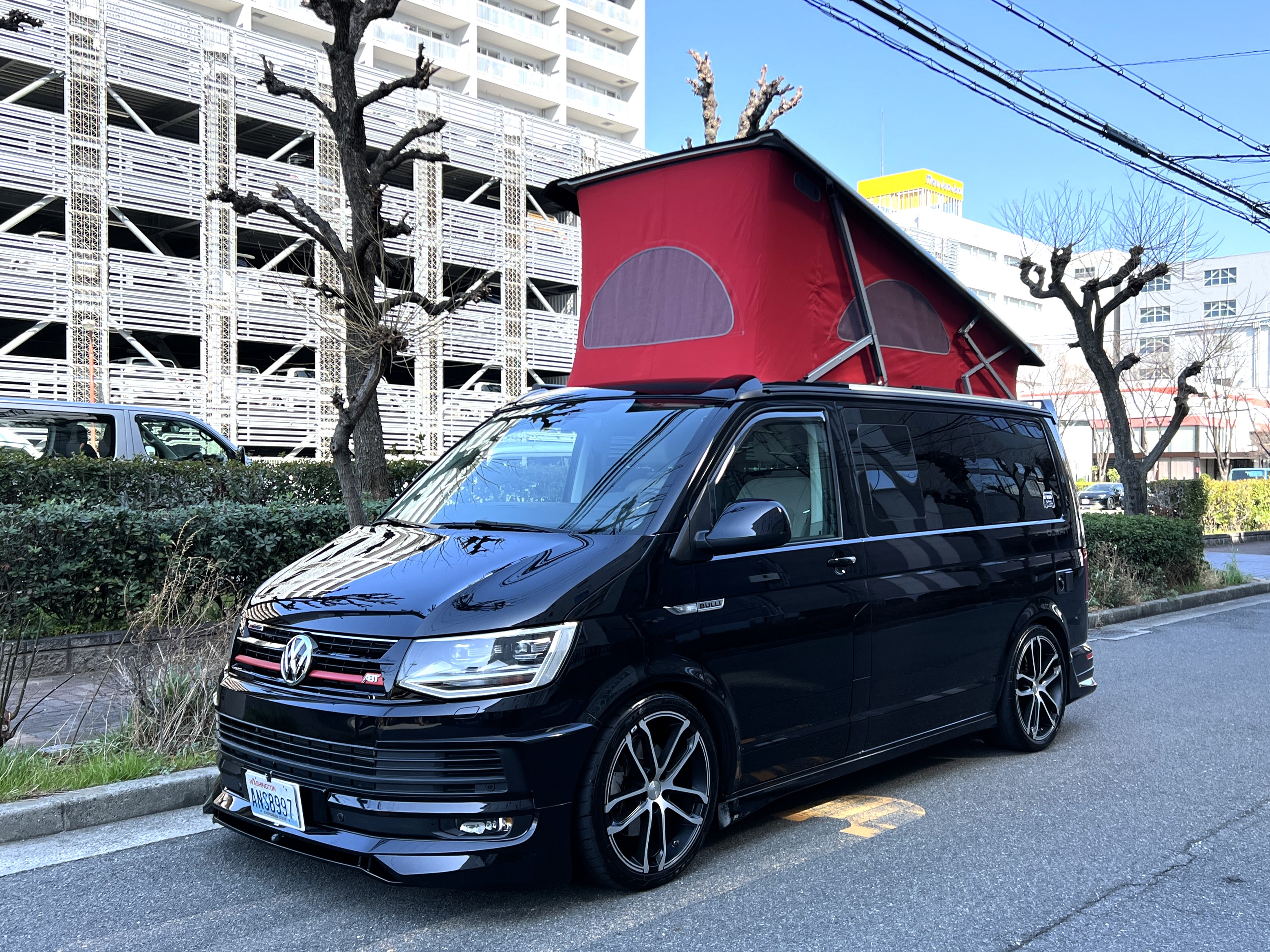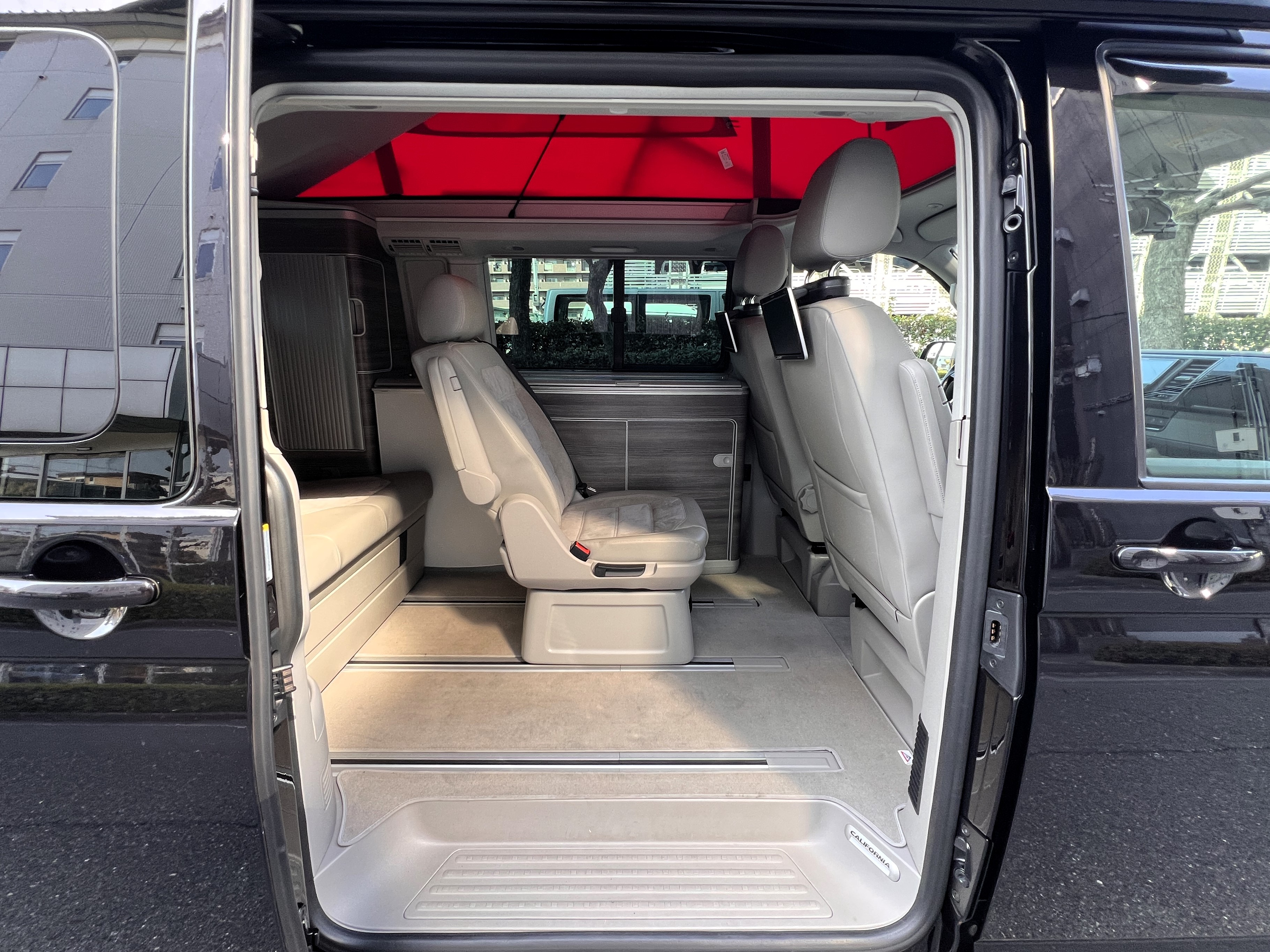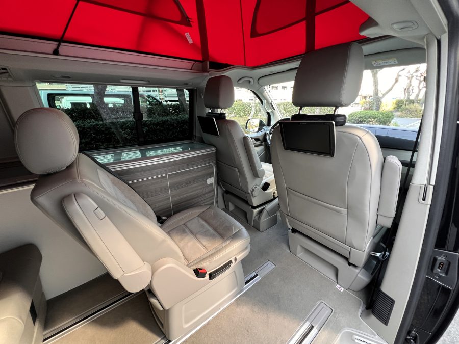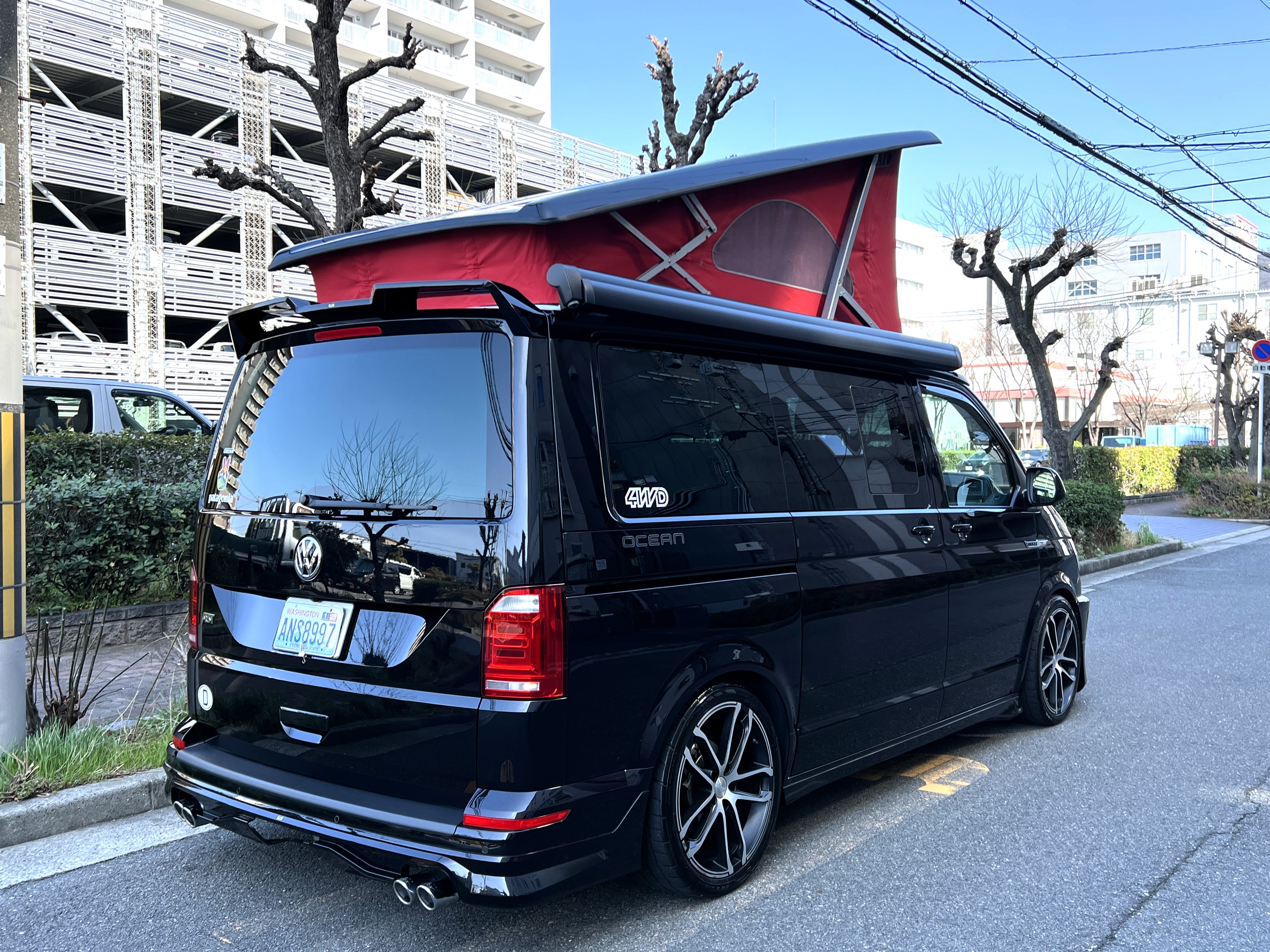 大変珍しい仕様のカリフォルニアオーシャン、登場です♬ 今回ご紹介するのは、ひと味違う特別なカリフォルニアオーシャン。なかなかお目にかかれない仕様で、思わず「おっ」となる一台です。現オーナーさまがこのオーシャンを手にされたのは約6年前。いわゆるキャンプ中心の使い方というよりは、このクルマが持つ“室内の広さ”を活かした別荘感覚の使い方で、全国津々浦々を旅してこられました♫行き先に着けば、そこはもう“もうひとつの自分の部屋”。そんな時間の使い方を、このカリフォルニアとともに楽しまれていたそうです。そしてもうひとつの魅力が、そのスタイル。“ドイツ人が泣いて喜びそうな”仕上がりの雰囲気を楽しみながら、ドライブそのものも満喫されていたとのこと◎ しかし今回、車両整理のため惜しまれつつも手放す決断をされました。「ぜひ、このカリフォルニアを気に入ってもらえたら嬉しいです。」とのコメントをいただいております。さて、そんなドイツ仕込みのオーシャンを見てまいりましょう♫ まず気になるのは、やはりそのルックスでしょう。なんとこのオーシャン、我々世代が憧れたABTスタイルをまとっているのです♫ 足元にもABTの20インチホイール。フロントグリルにはレッドラインが入り、スポーティな印象を演出・・・と思いきや、なんとポップアップルーフの生地もレッドで統一👍 ドイツ人が・・・というよりは、どちらかというとイギリス的なセンスが光る“遊びの効いたコーディネート”かもしれませんね◎ 大径ホイール+やんわりローダウン、そこに上品なエアロをまといながらも、芝生へスッと乗り入れてサイドオーニングを出してポップアップルーフを展開。かと思えば、都会ではビルの谷間を颯爽と駆け抜ける。この“アーバン×アウトドア”の絶妙なバランス感。もしかすると、近い将来日本でもこのスタイルが主流になるのかも?!と思わせてくれる一台です◎ そしてコンディションですが、ボディは新車のような輝き。思わず「ほんとにこの年式?」と疑ってしまうほどキレイです👍 なお、リアエアロのセンターカバーは撮影時点では外れておりますが、現オーナーさまご負担にてしっかり装着してからのお引き渡しとなりますのでご安心くださいませ。