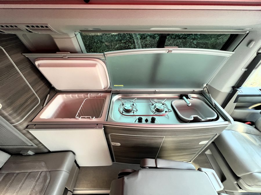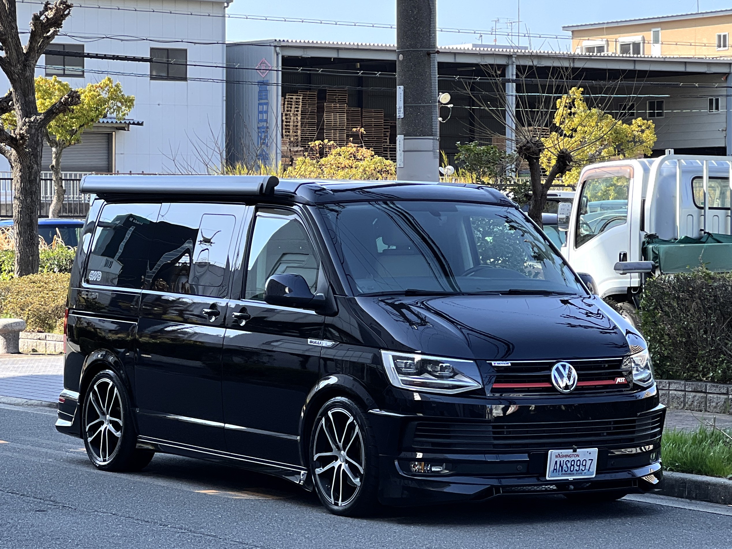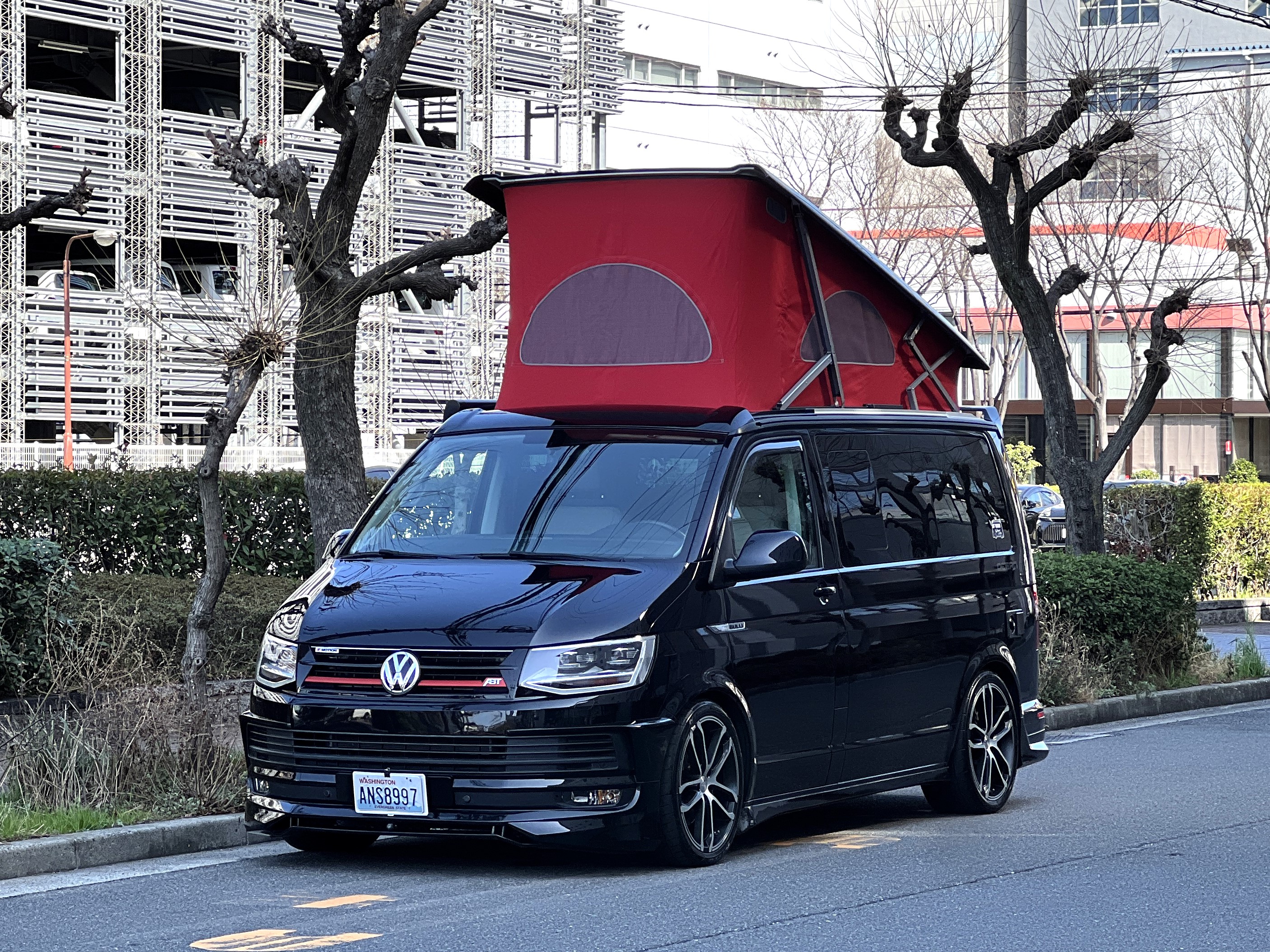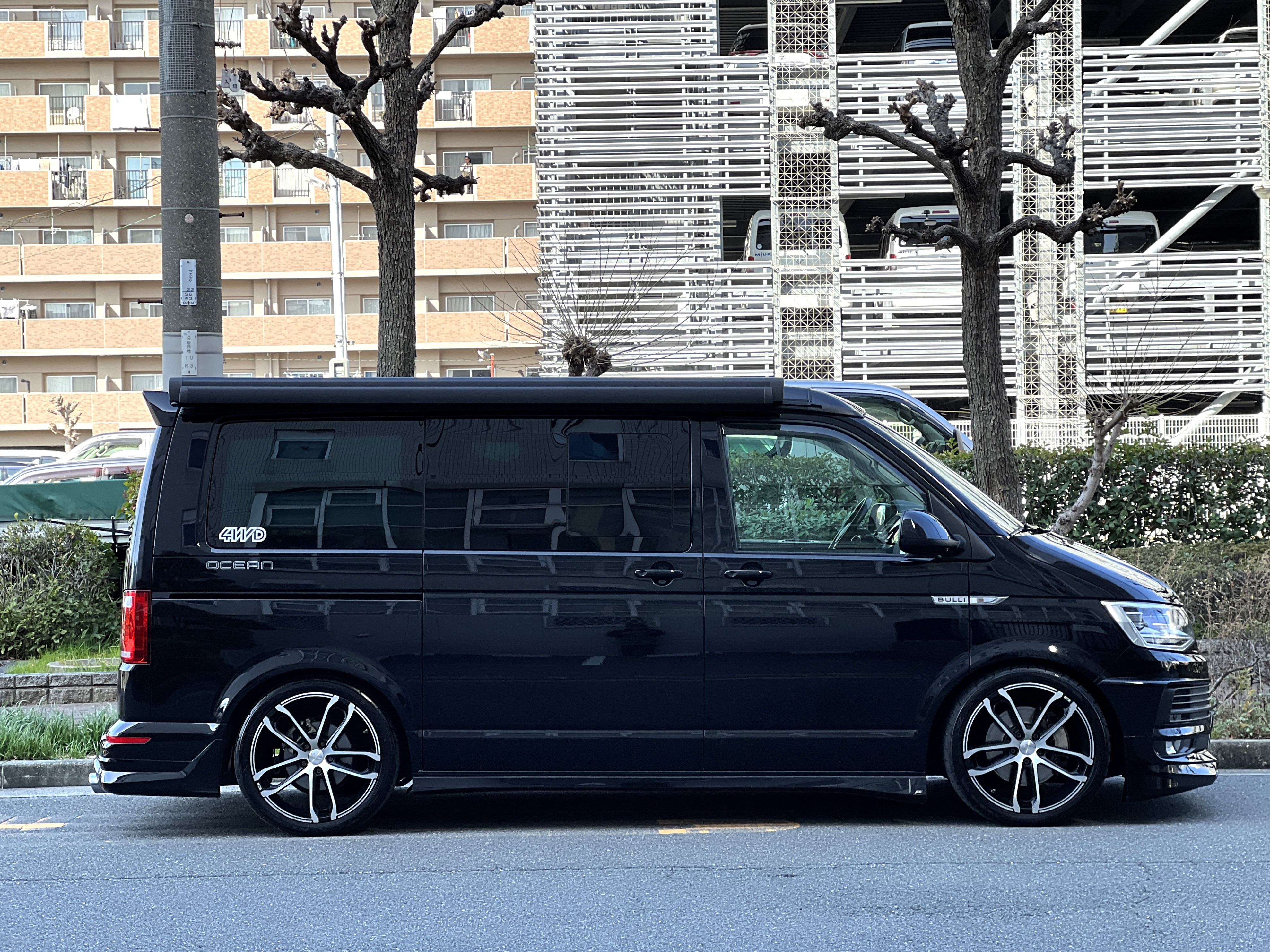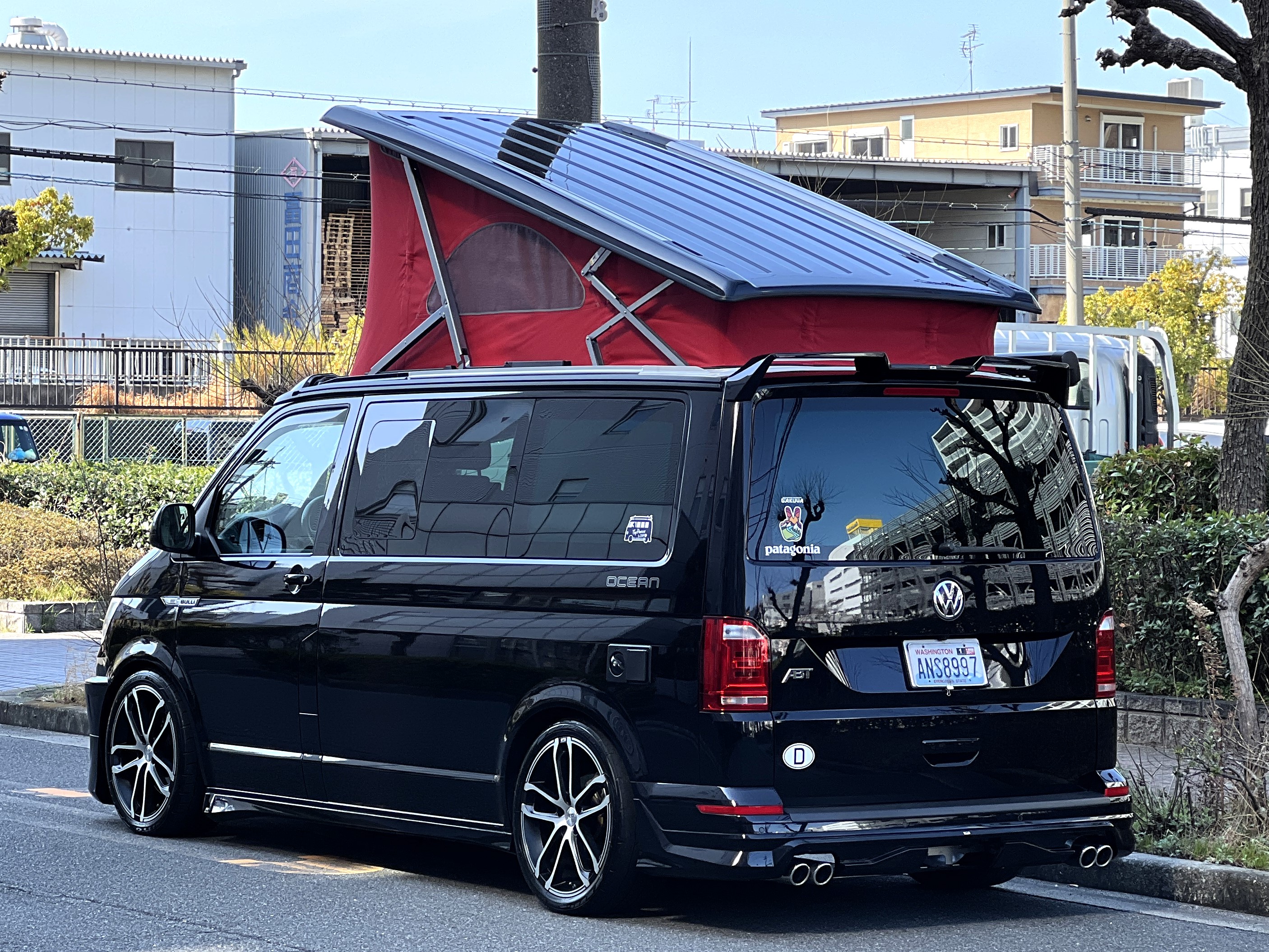 大変珍しい仕様のカリフォルニアオーシャン、登場です♬ 今回ご紹介するのは、ひと味違う特別なカリフォルニアオーシャン。なかなかお目にかかれない仕様で、思わず「おっ」となる一台です。現オーナーさまがこのオーシャンを手にされたのは約6年前。いわゆるキャンプ中心の使い方というよりは、このクルマが持つ“室内の広さ”を活かした別荘感覚の使い方で、全国津々浦々を旅してこられました♫行き先に着けば、そこはもう“もうひとつの自分の部屋”。そんな時間の使い方を、このカリフォルニアとともに楽しまれていたそうです。そしてもうひとつの魅力が、そのスタイル。“ドイツ人が泣いて喜びそうな”仕上がりの雰囲気を楽しみながら、ドライブそのものも満喫されていたとのこと◎ しかし今回、車両整理のため惜しまれつつも手放す決断をされました。「ぜひ、このカリフォルニアを気に入ってもらえたら嬉しいです。」とのコメントをいただいております。さて、そんなドイツ仕込みのオーシャンを見てまいりましょう♫ まず気になるのは、やはりそのルックスでしょう。なんとこのオーシャン、我々世代が憧れたABTスタイルをまとっているのです♫ 足元にもABTの20インチホイール。フロントグリルにはレッドラインが入り、スポーティな印象を演出・・・と思いきや、なんとポップアップルーフの生地もレッドで統一👍 ドイツ人が・・・というよりは、どちらかというとイギリス的なセンスが光る“遊びの効いたコーディネート”かもしれませんね◎ 大径ホイール+やんわりローダウン、そこに上品なエアロをまといながらも、芝生へスッと乗り入れてサイドオーニングを出してポップアップルーフを展開。かと思えば、都会ではビルの谷間を颯爽と駆け抜ける。この“アーバン×アウトドア”の絶妙なバランス感。もしかすると、近い将来日本でもこのスタイルが主流になるのかも?!と思わせてくれる一台です◎ そしてコンディションですが、ボディは新車のような輝き。思わず「ほんとにこの年式?」と疑ってしまうほどキレイです👍 なお、リアエアロのセンターカバーは撮影時点では外れておりますが、現オーナーさまご負担にてしっかり装着してからのお引き渡しとなりますのでご安心くださいませ。
